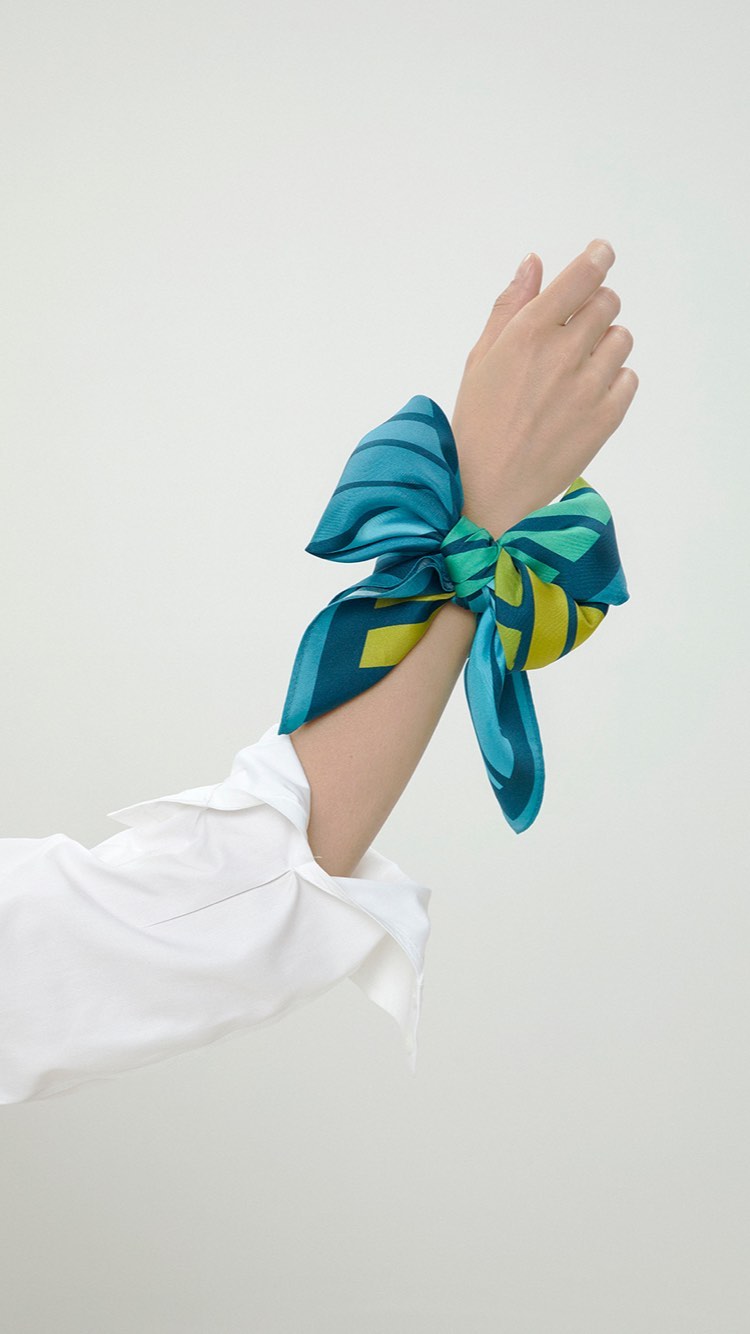 მცირე ზომის აბრეშუმის ყელსახვევი, რომელიც შეგიძლია გაიკეთო ყელზე, თმაზე ან ხელზე —...