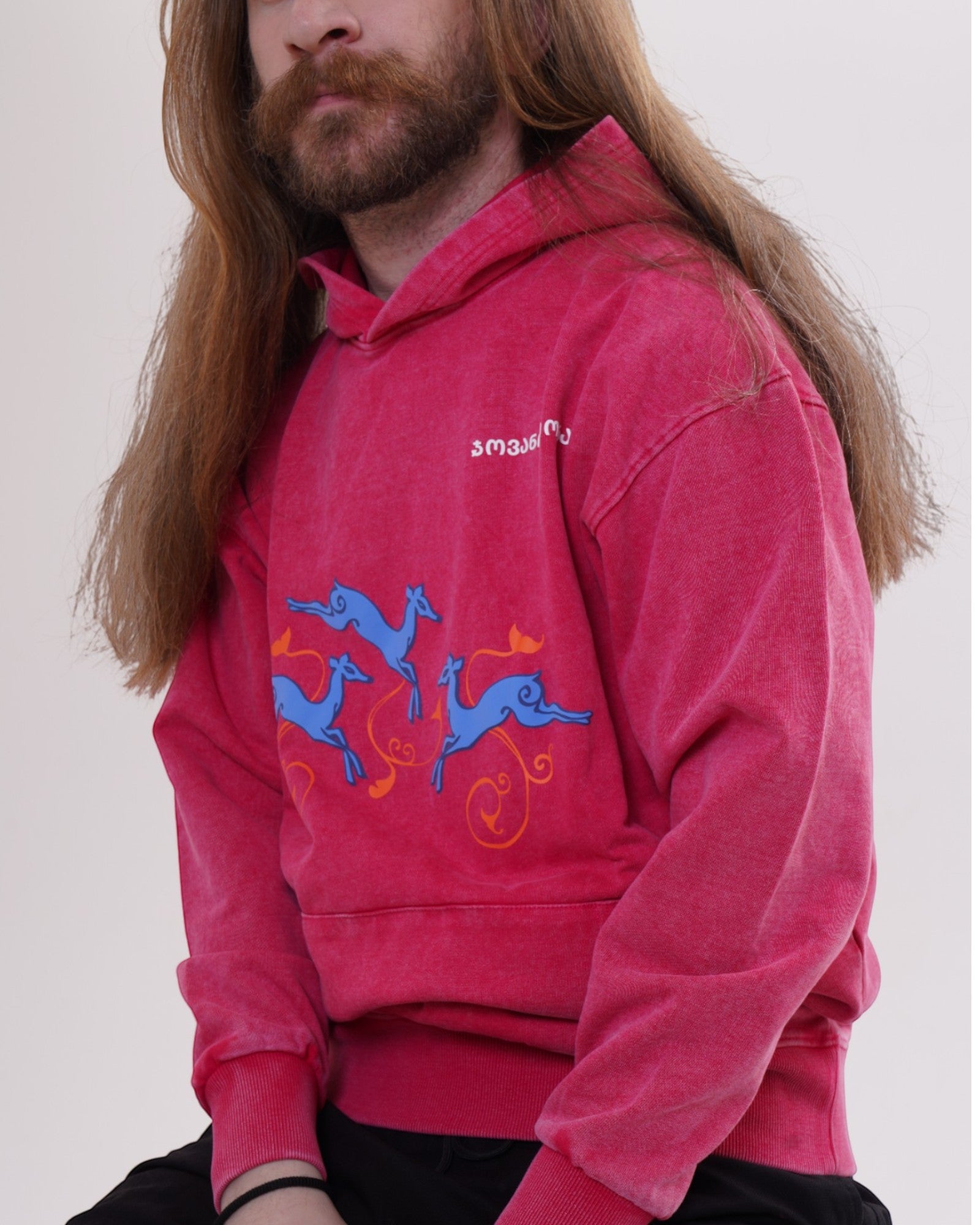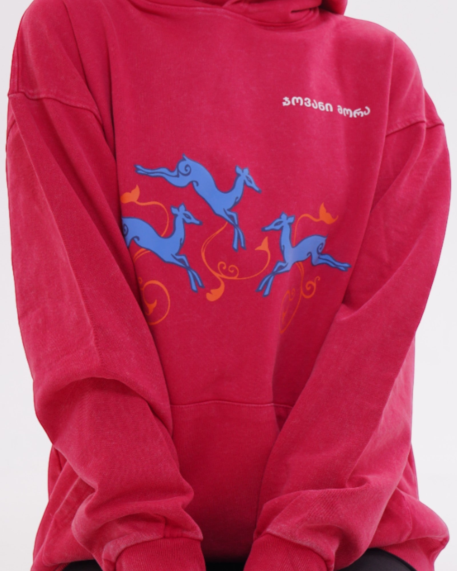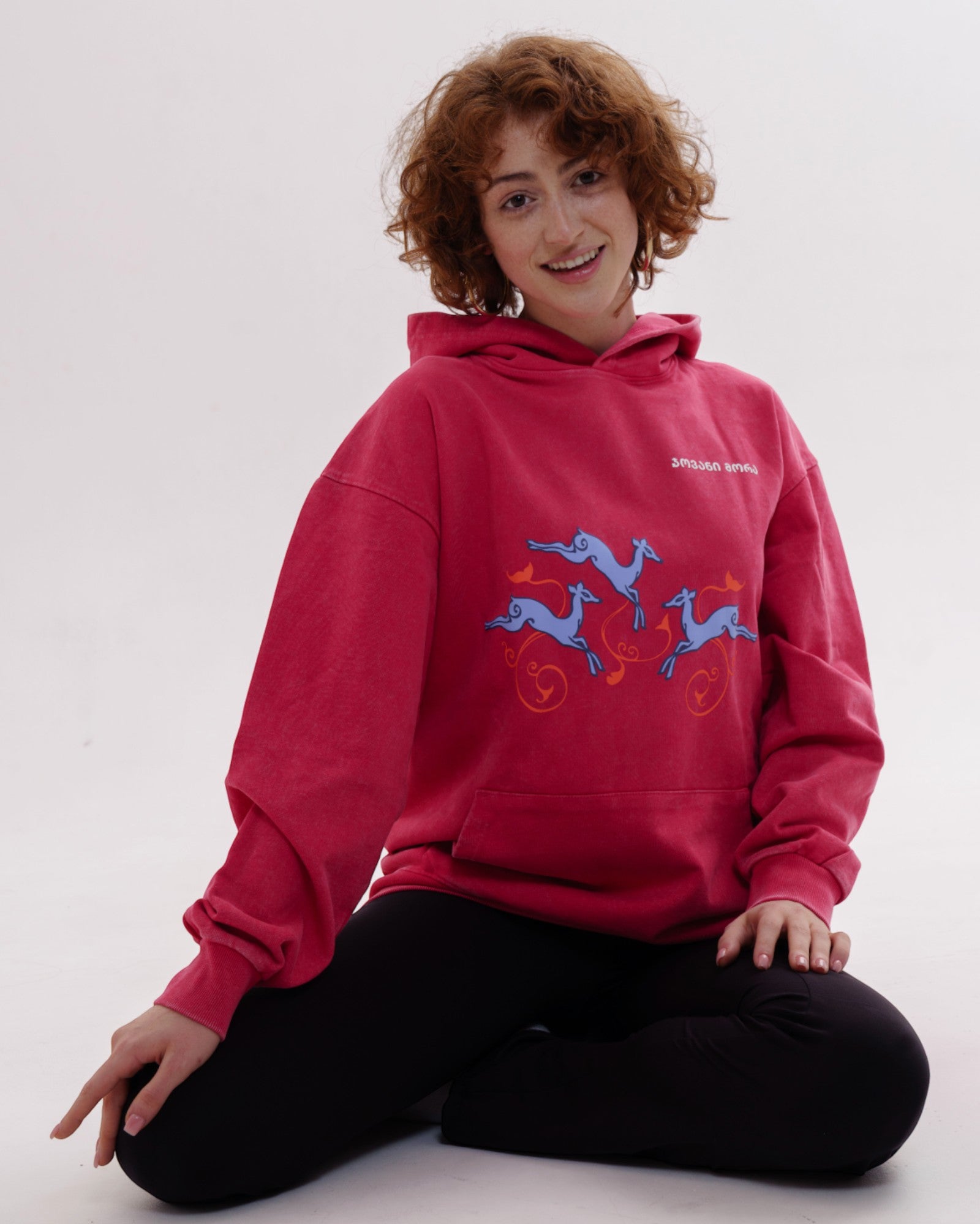 ჰუდი - 100% მჟავათი გარეცხილი ბამბა - Deer's Leap - წითელი