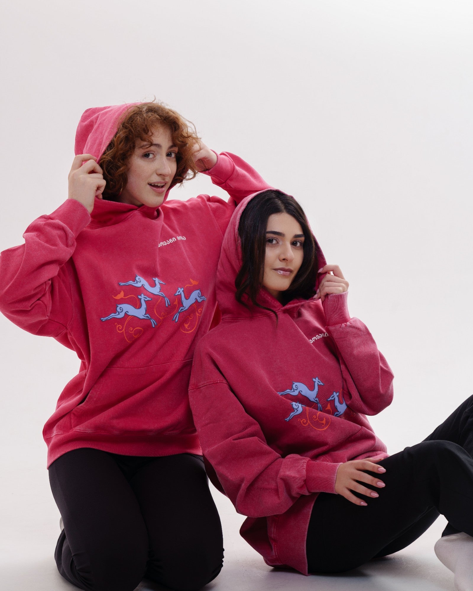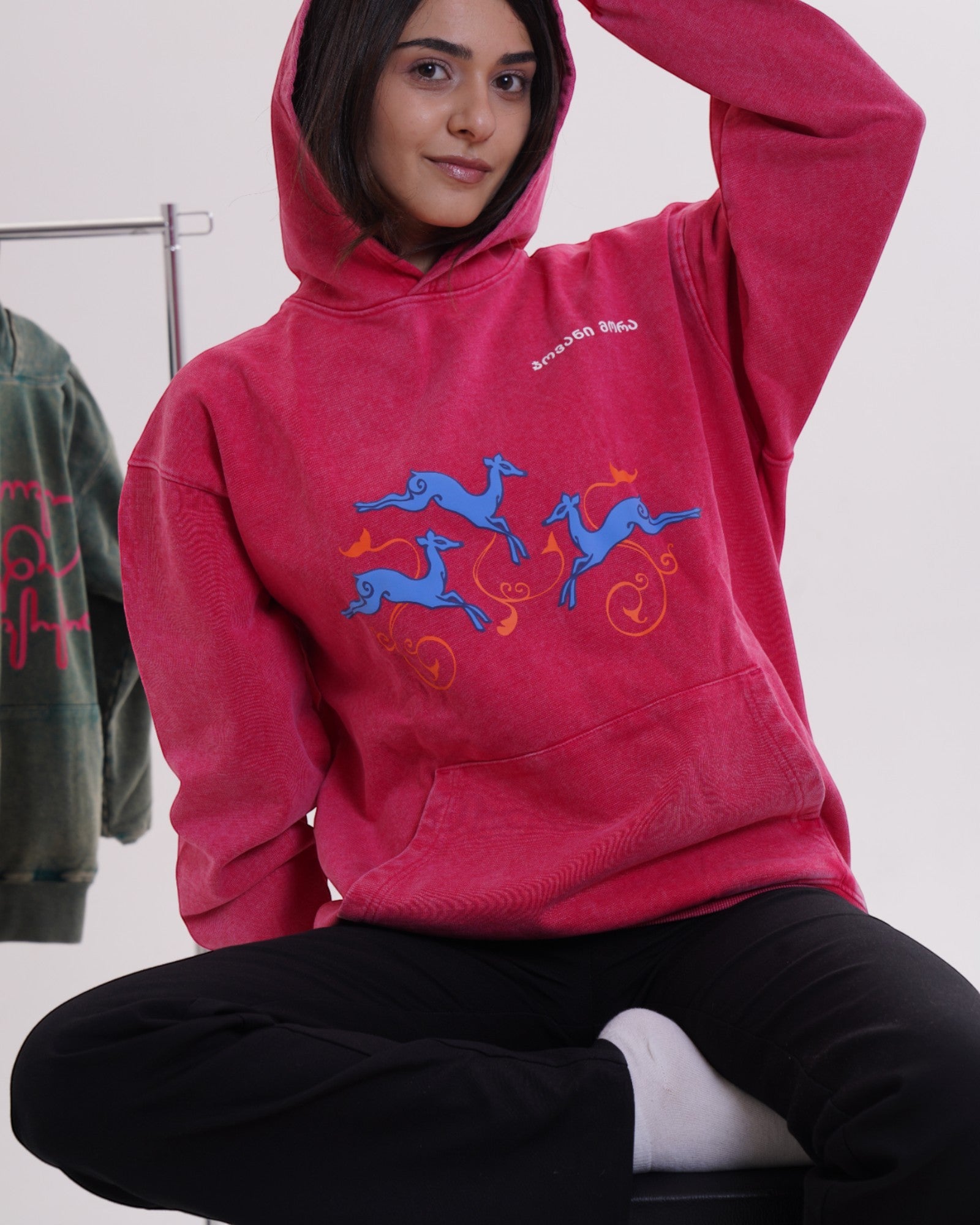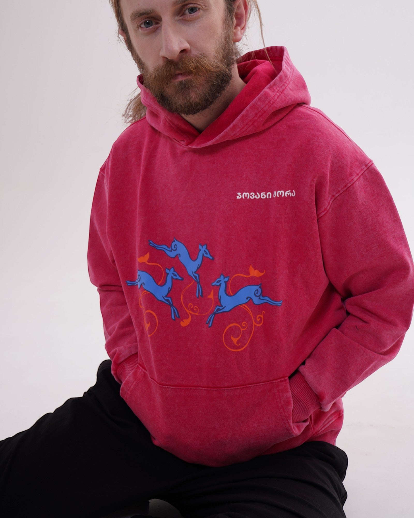 ჰუდი - 100% მჟავათი გარეცხილი ბამბა - Deer's Leap - წითელი