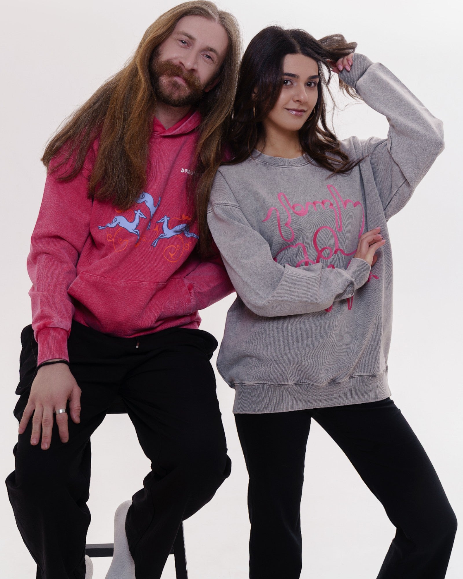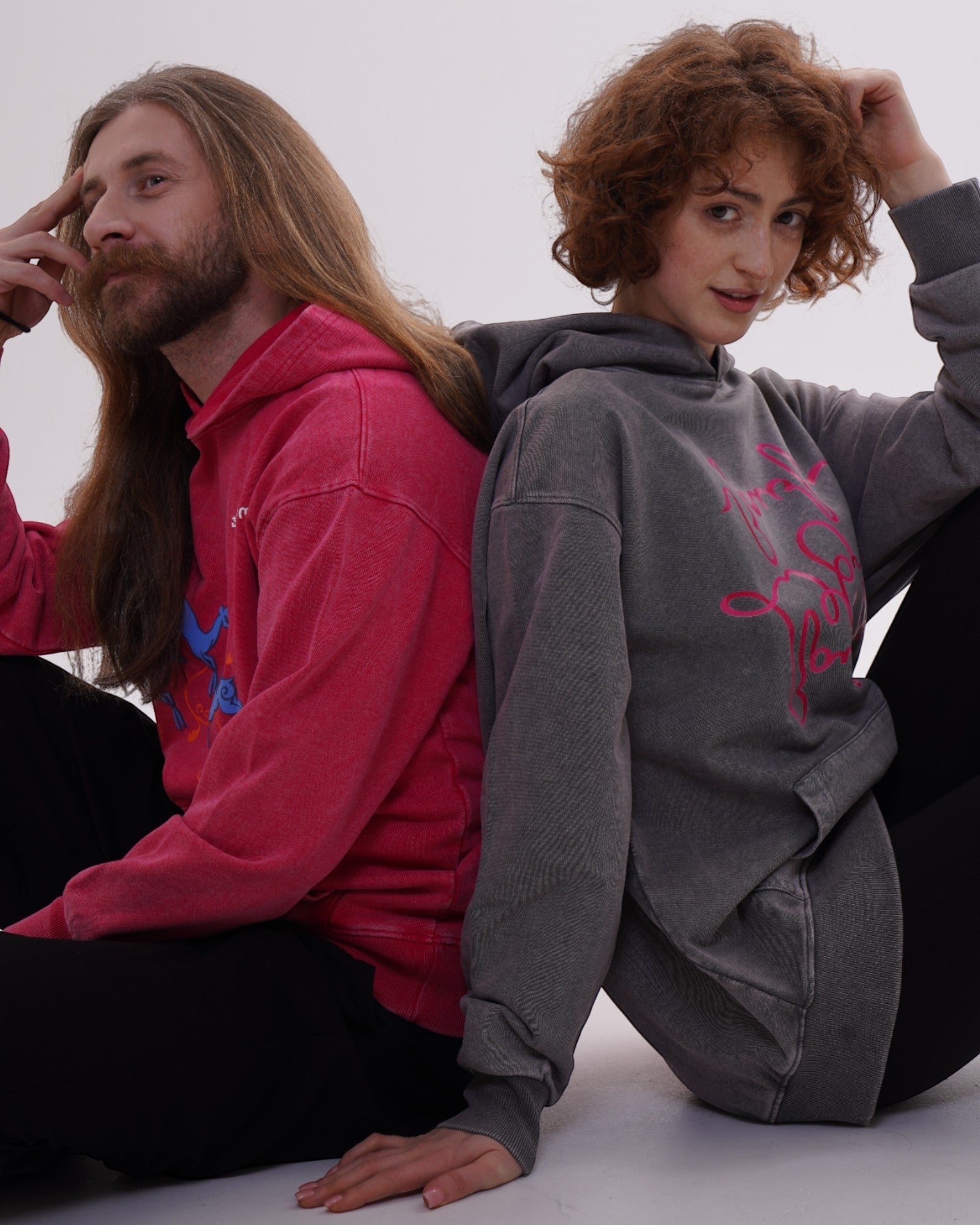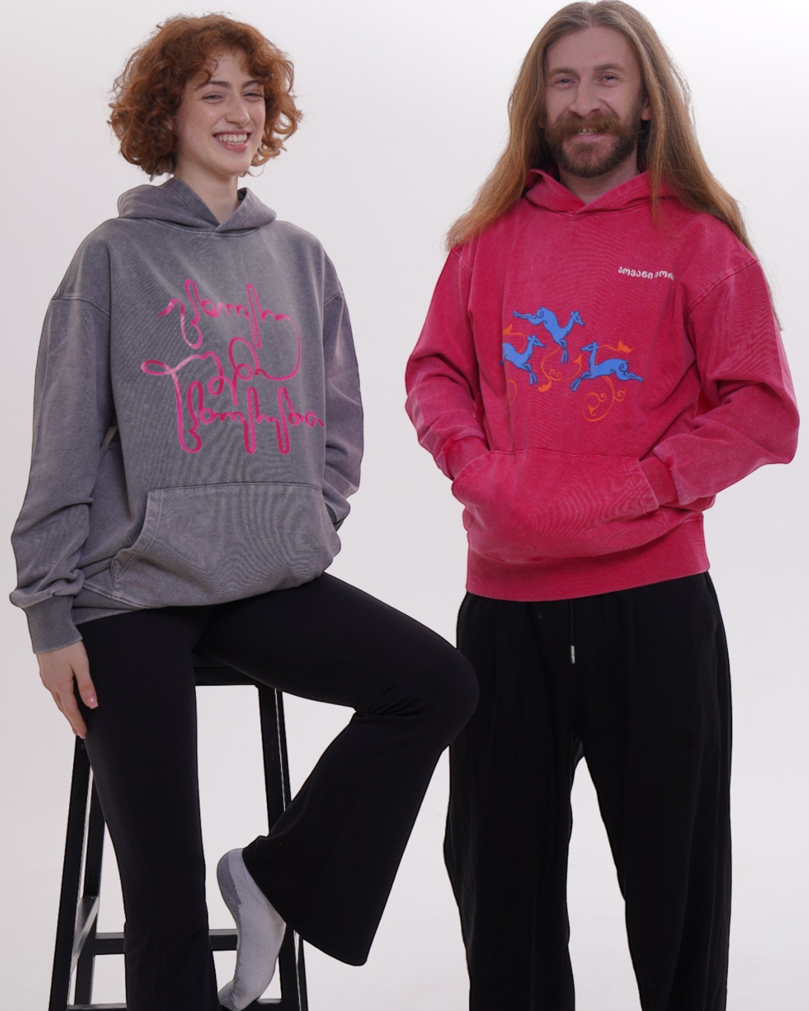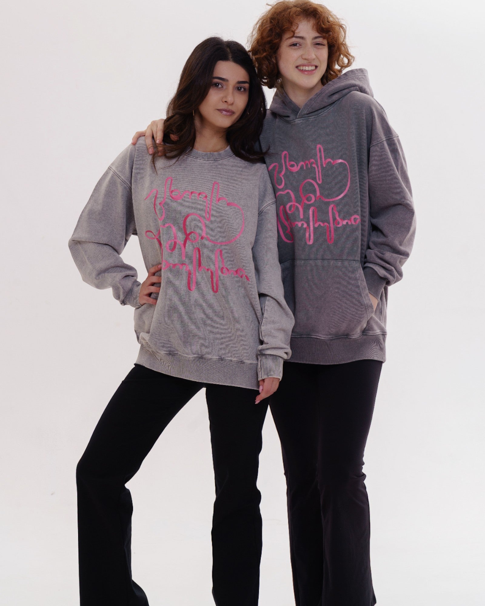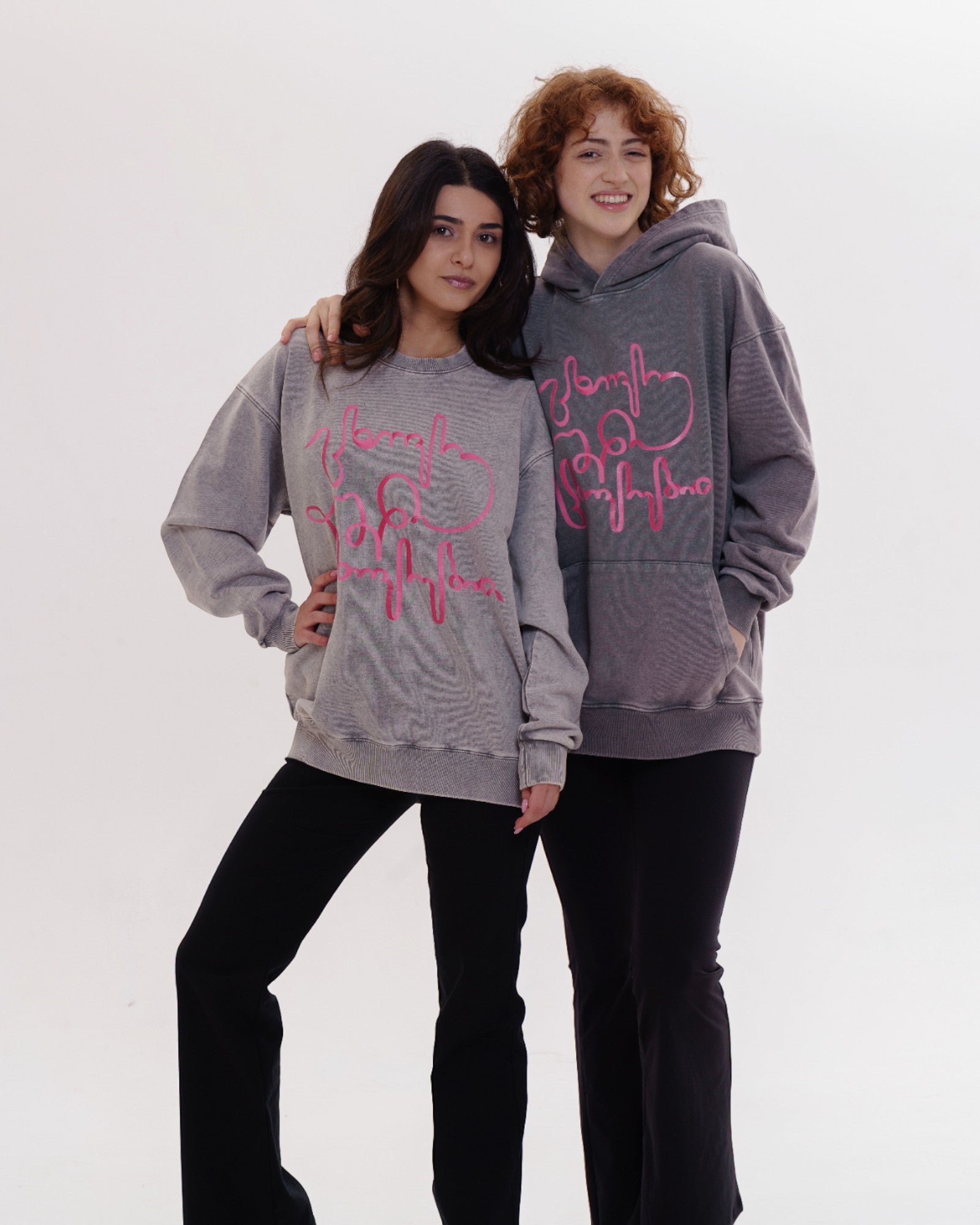 ჰუდი - 100% მჟავათი გარეცხილი ბამბა - იცხოვრე შენი ცხოვრებით - ნაცრისფერი - m² x Giovanni Morra