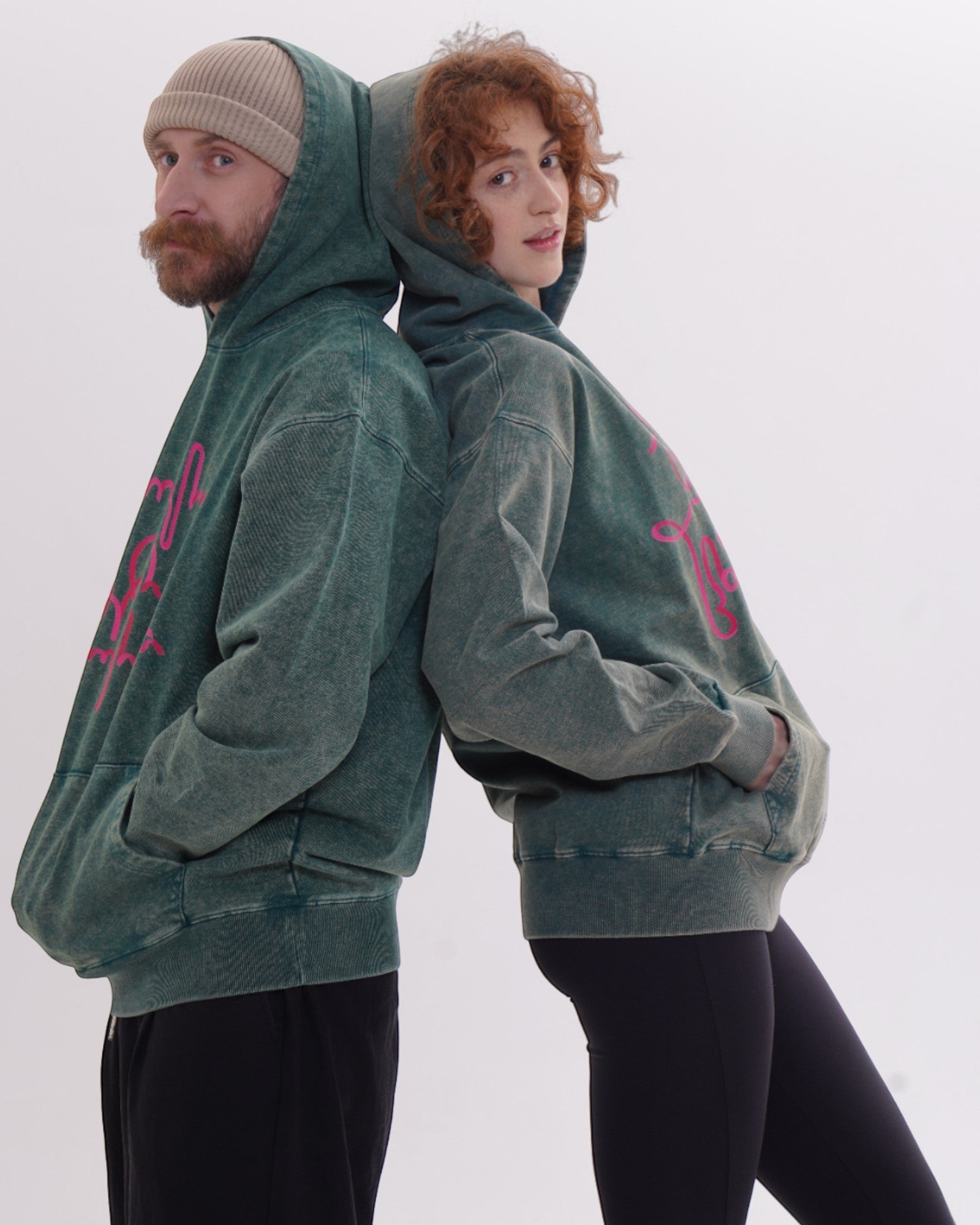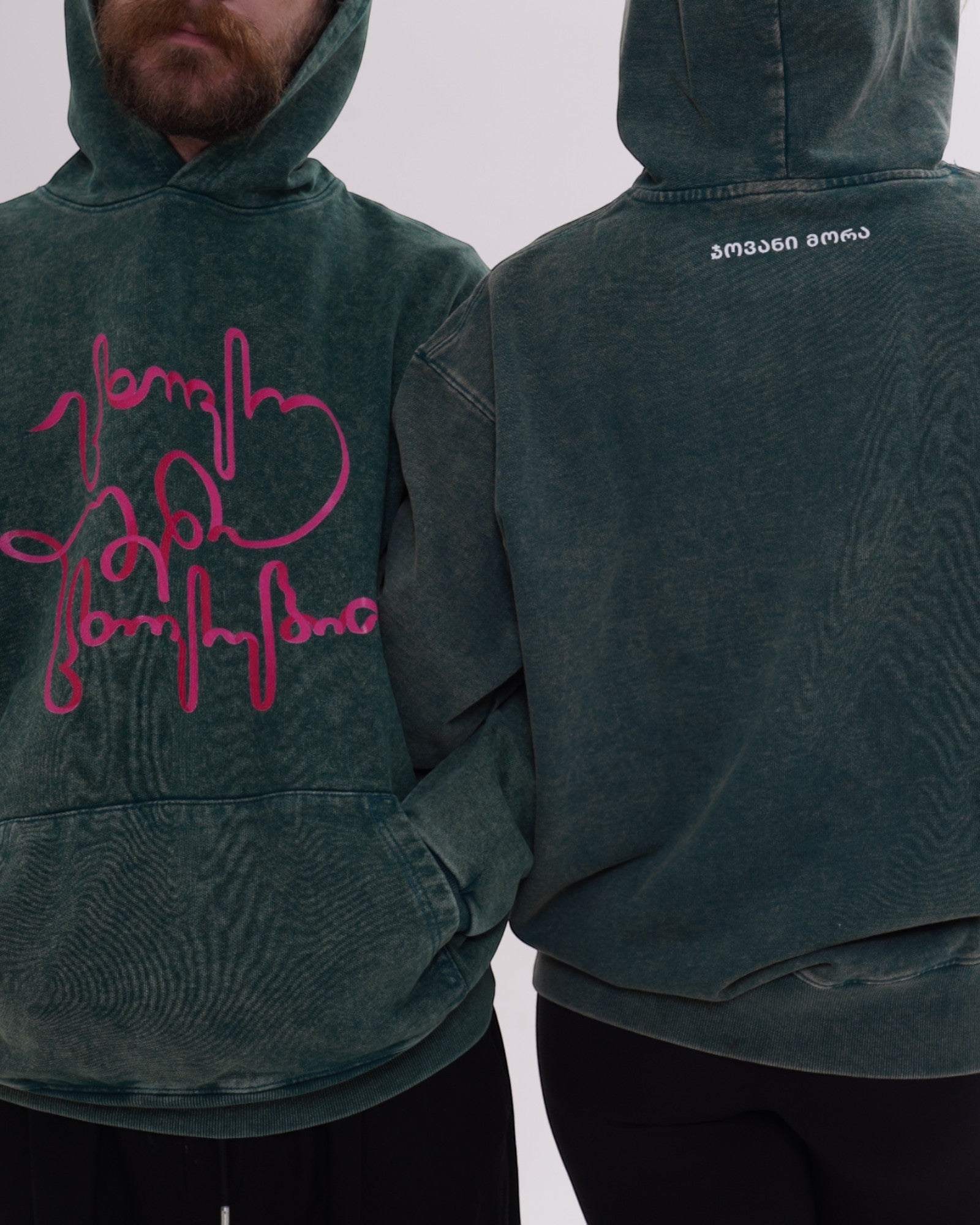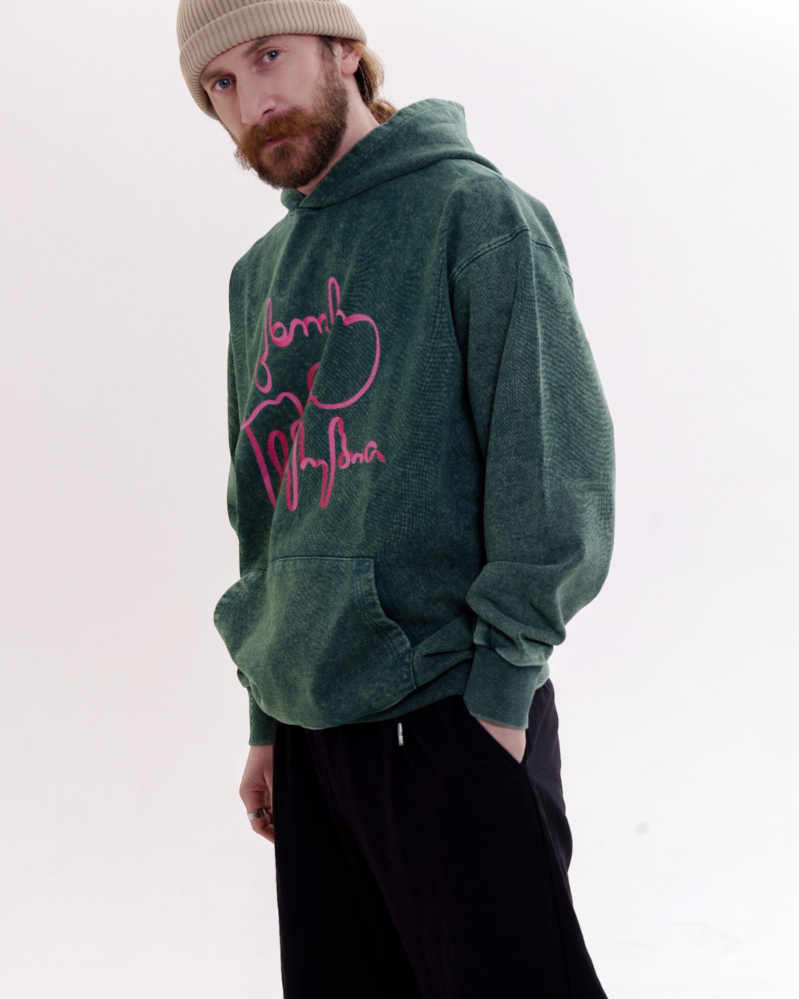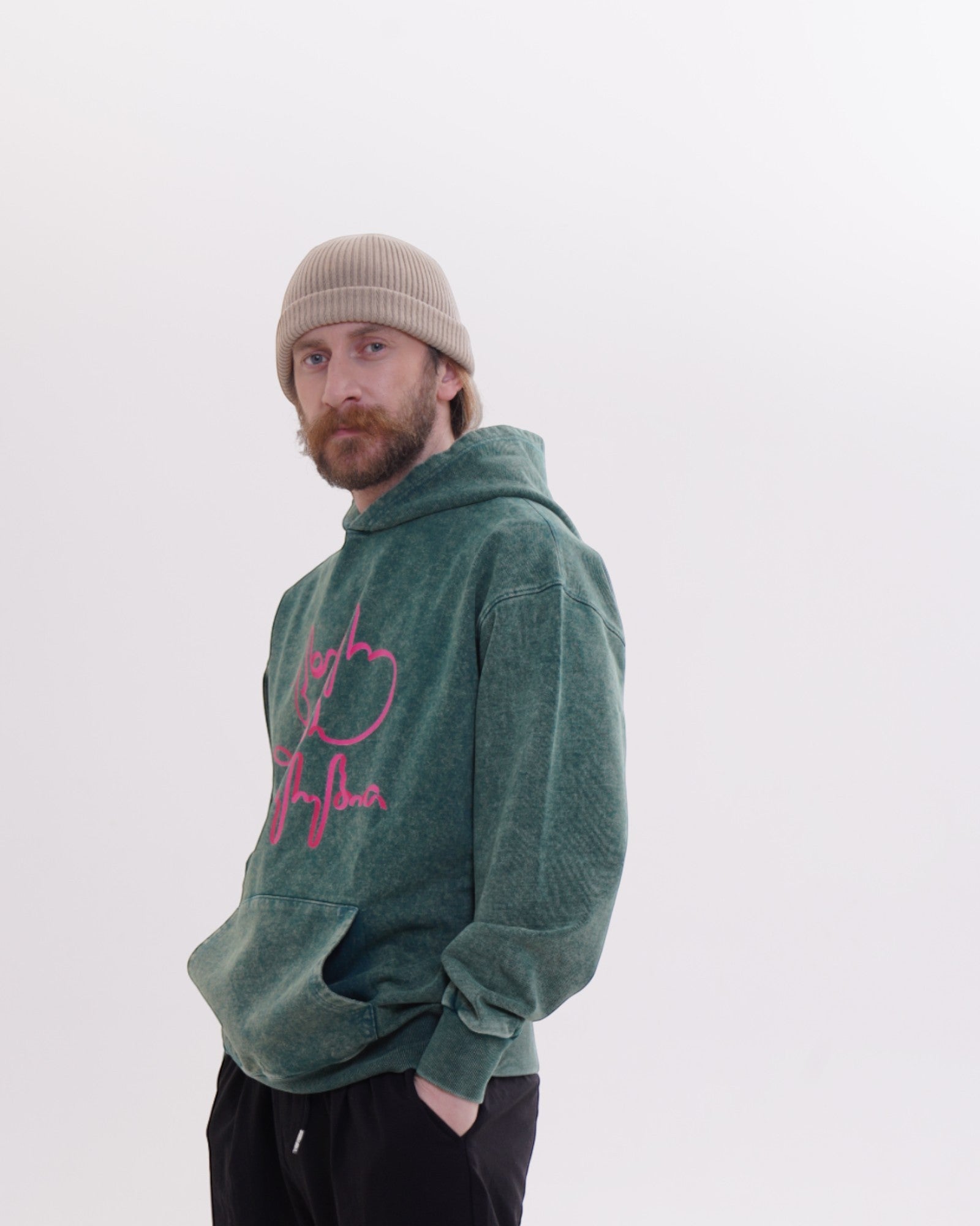 ჰუდი - 100% მჟავათი გარეცხილი ბამბა - იცხოვრე საკუთარი ცხოვრებით - მწვანე - m² x Giovanni Morra