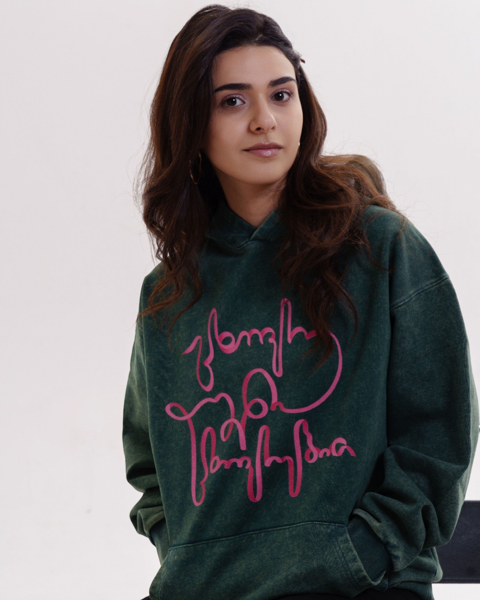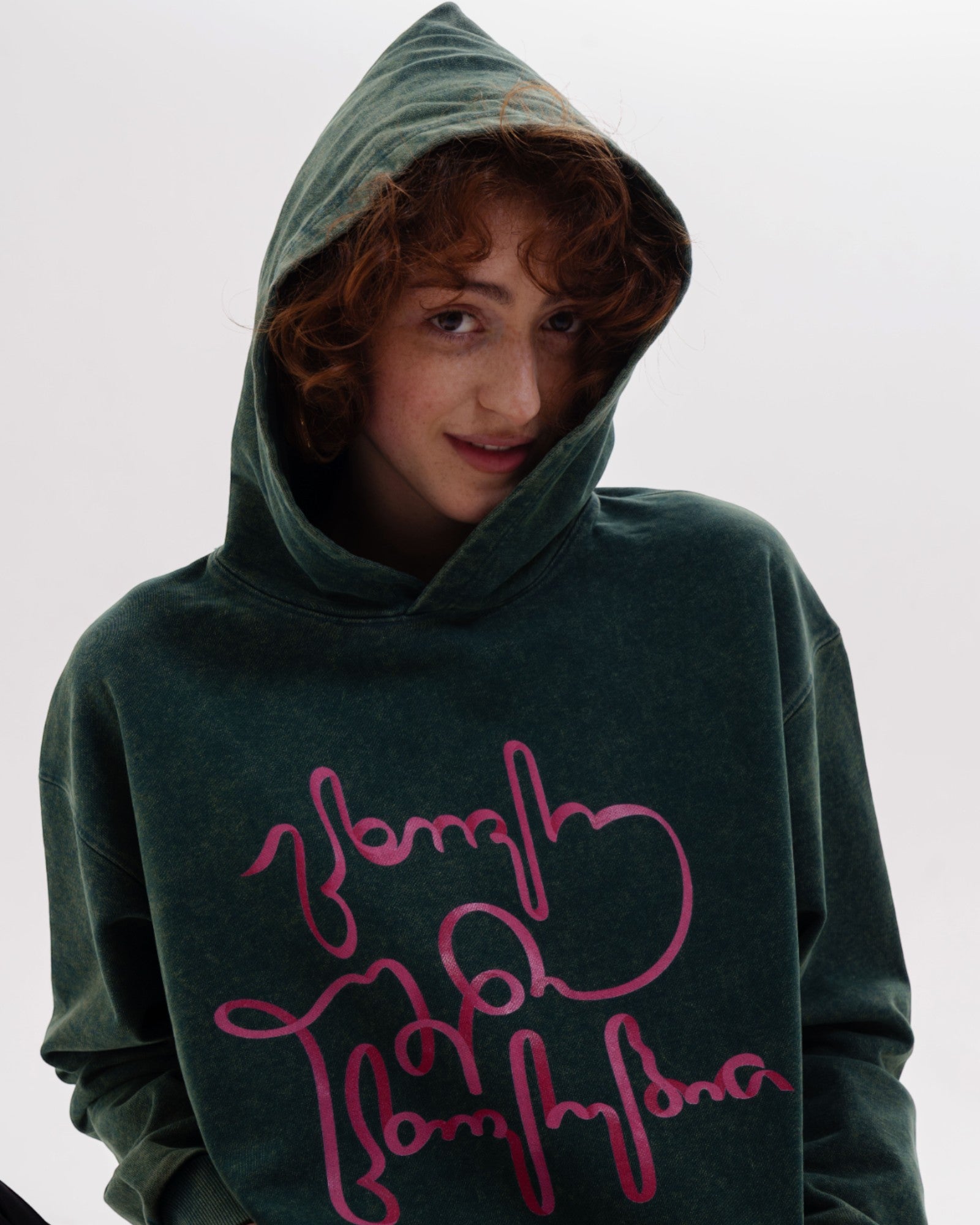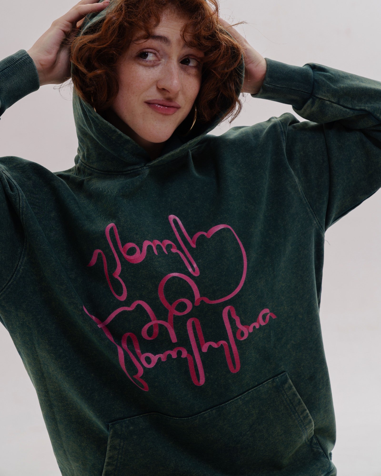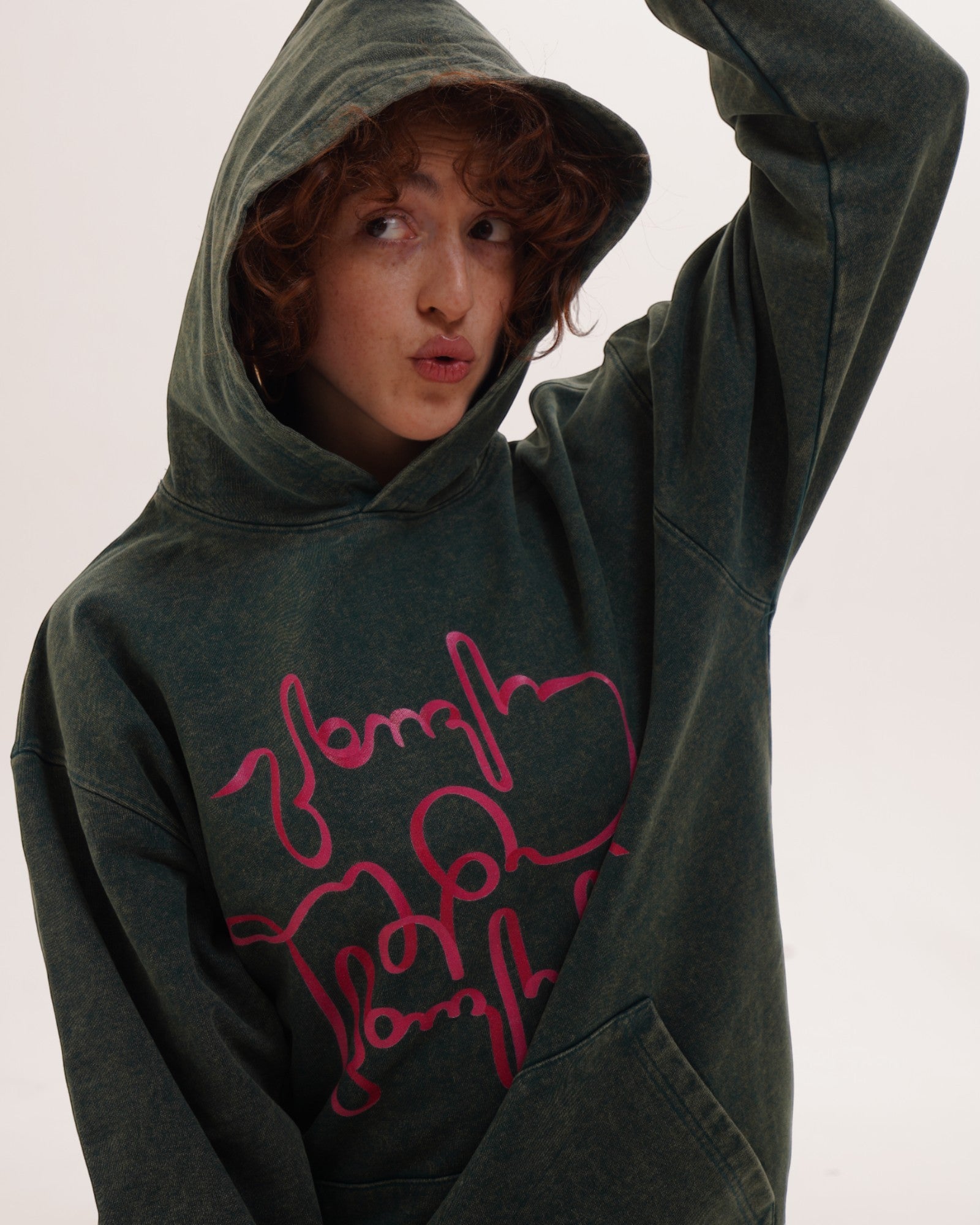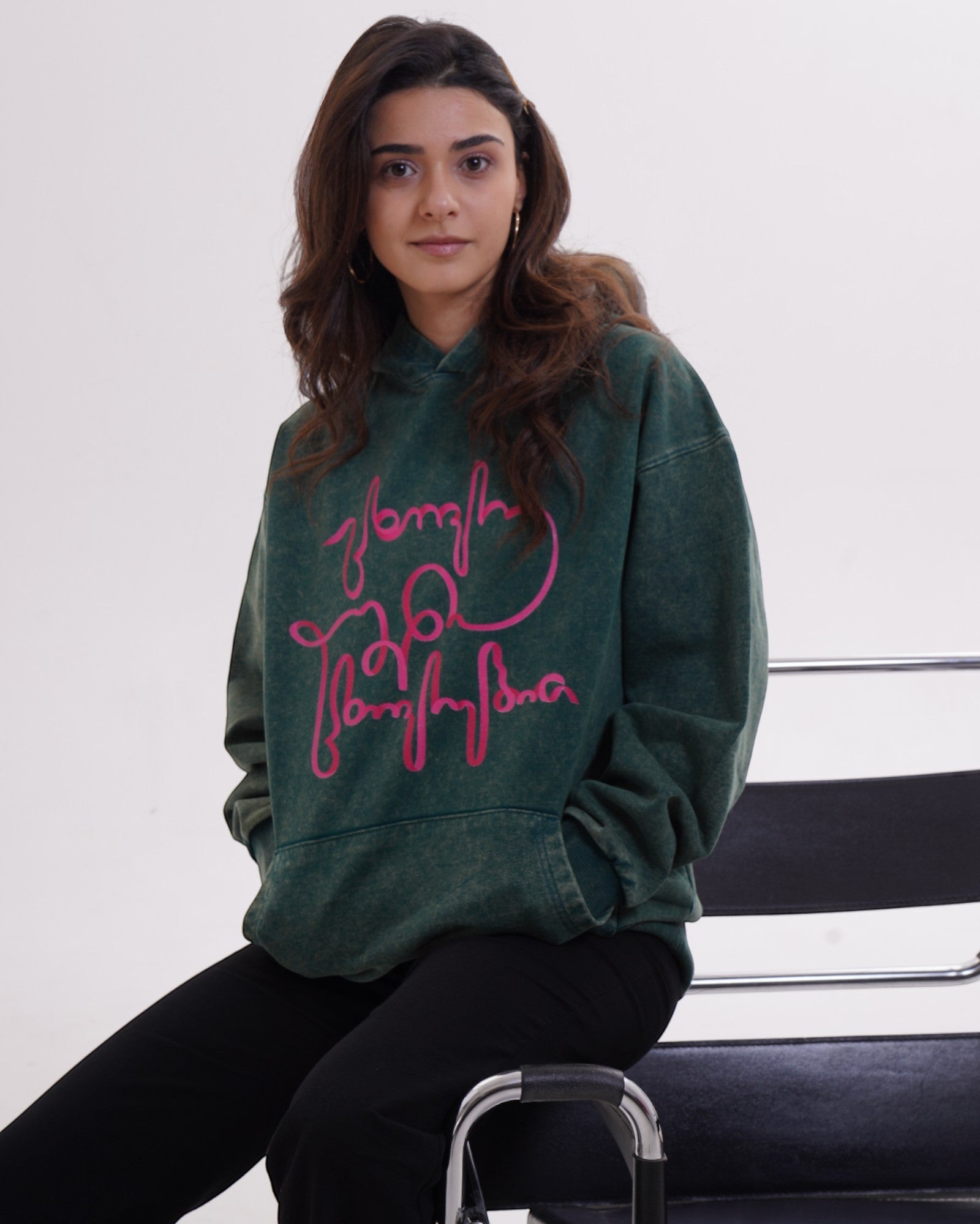 ჰუდი - 100% მჟავათი გარეცხილი ბამბა - იცხოვრე საკუთარი ცხოვრებით - მწვანე - m² x Giovanni Morra
