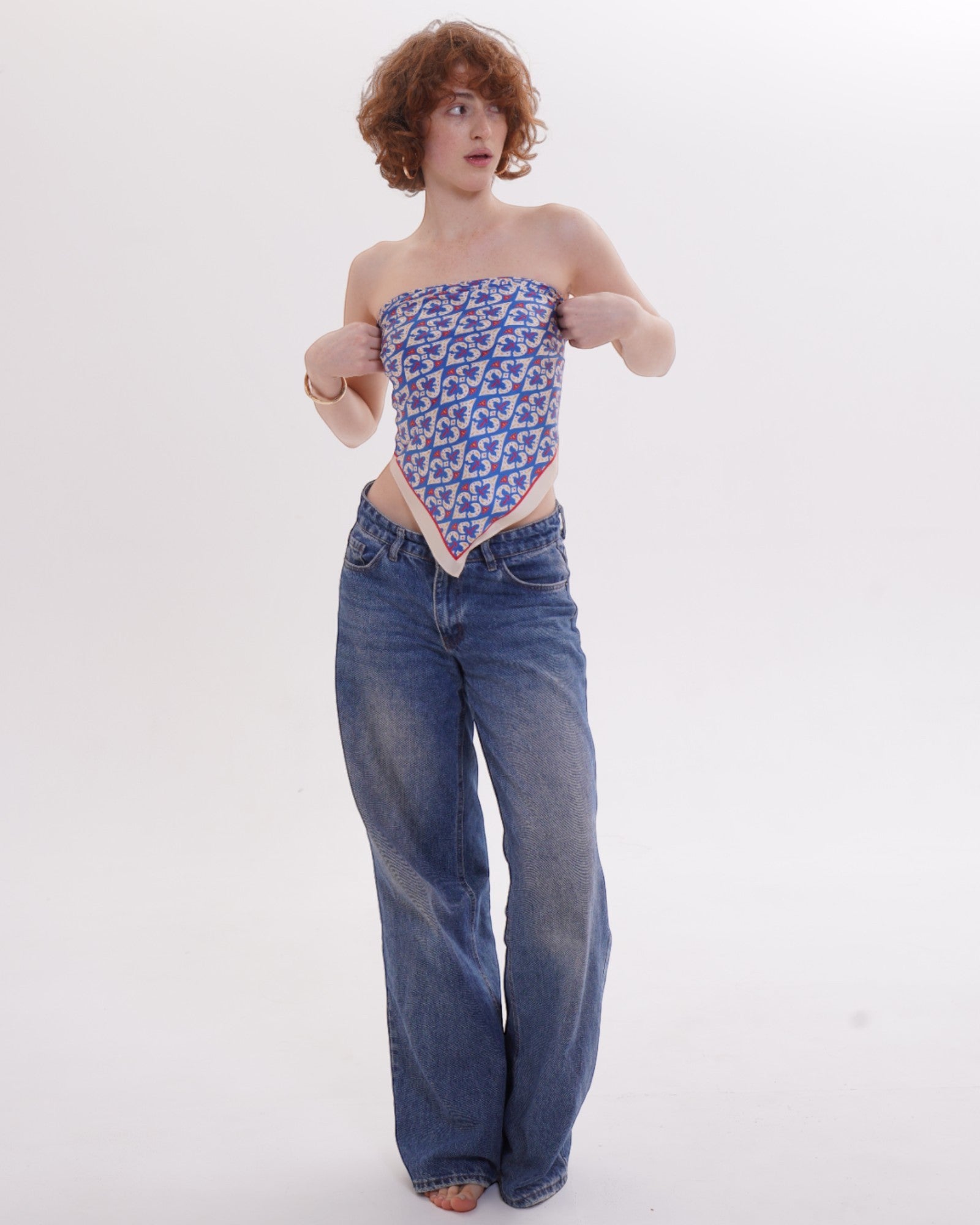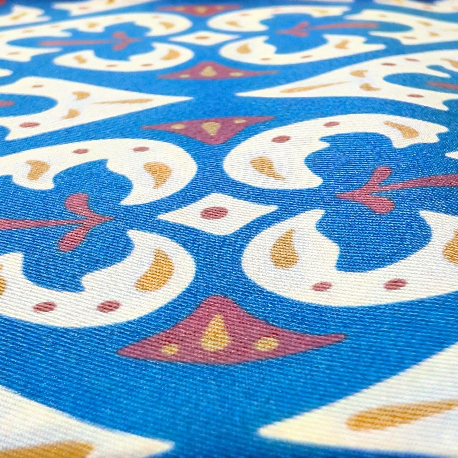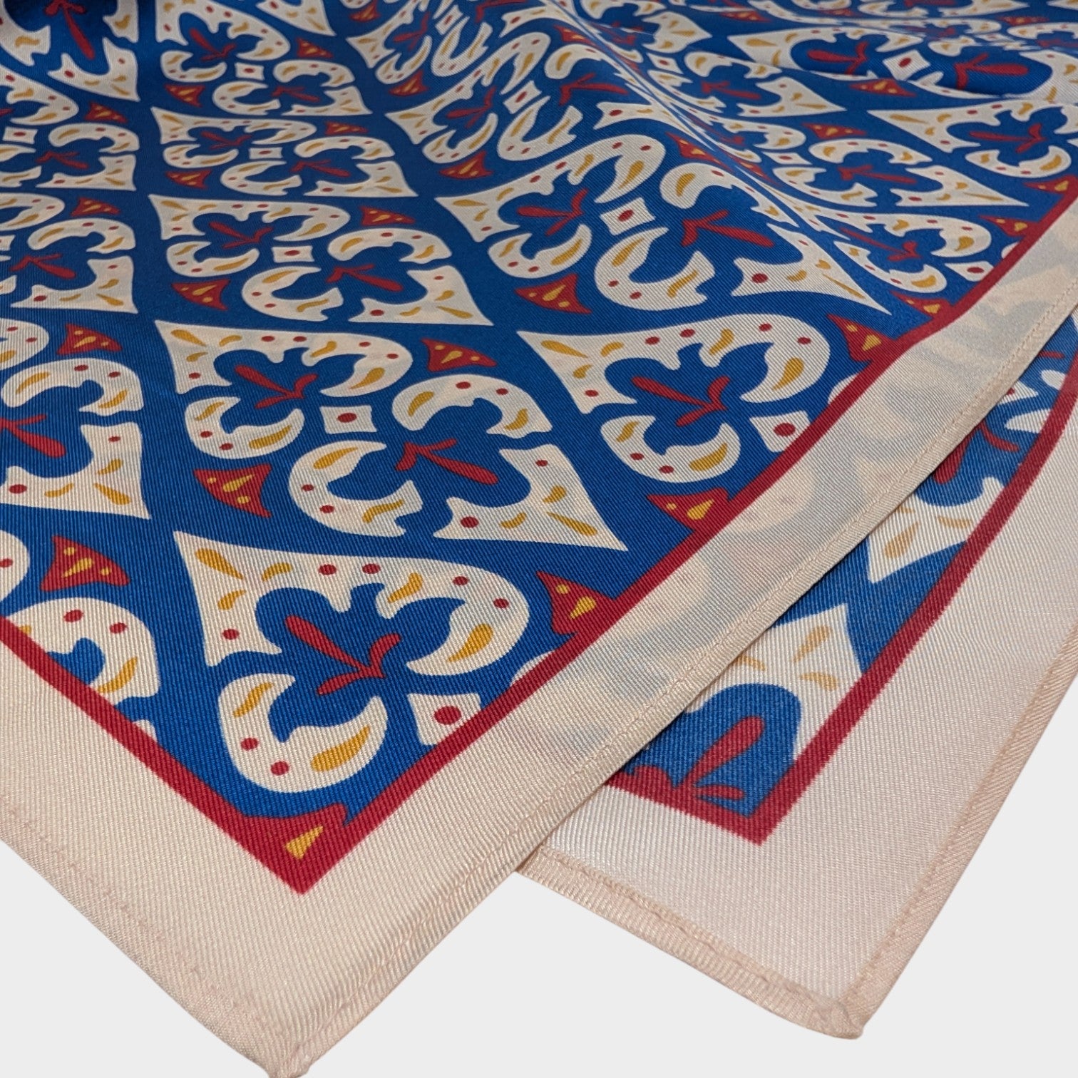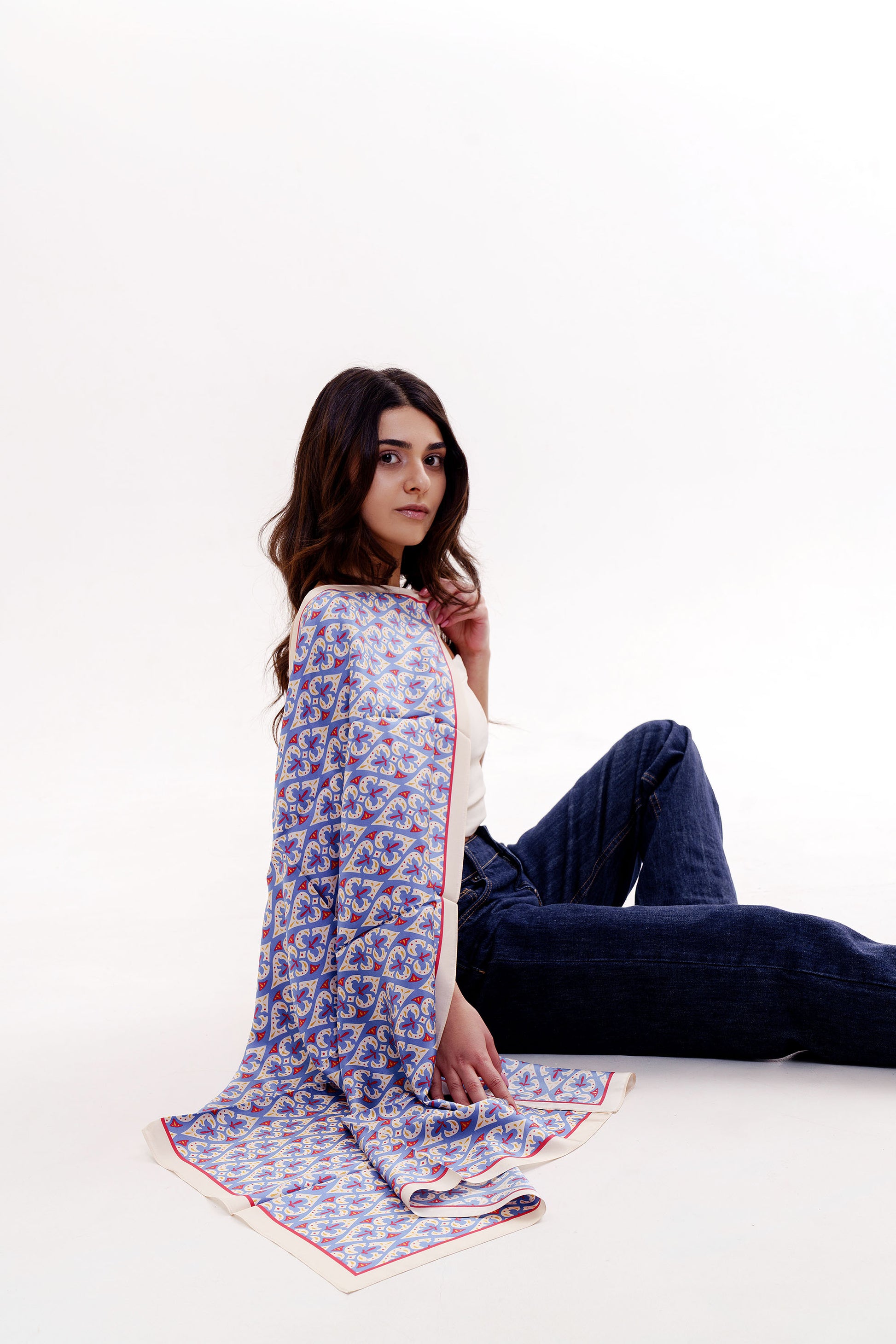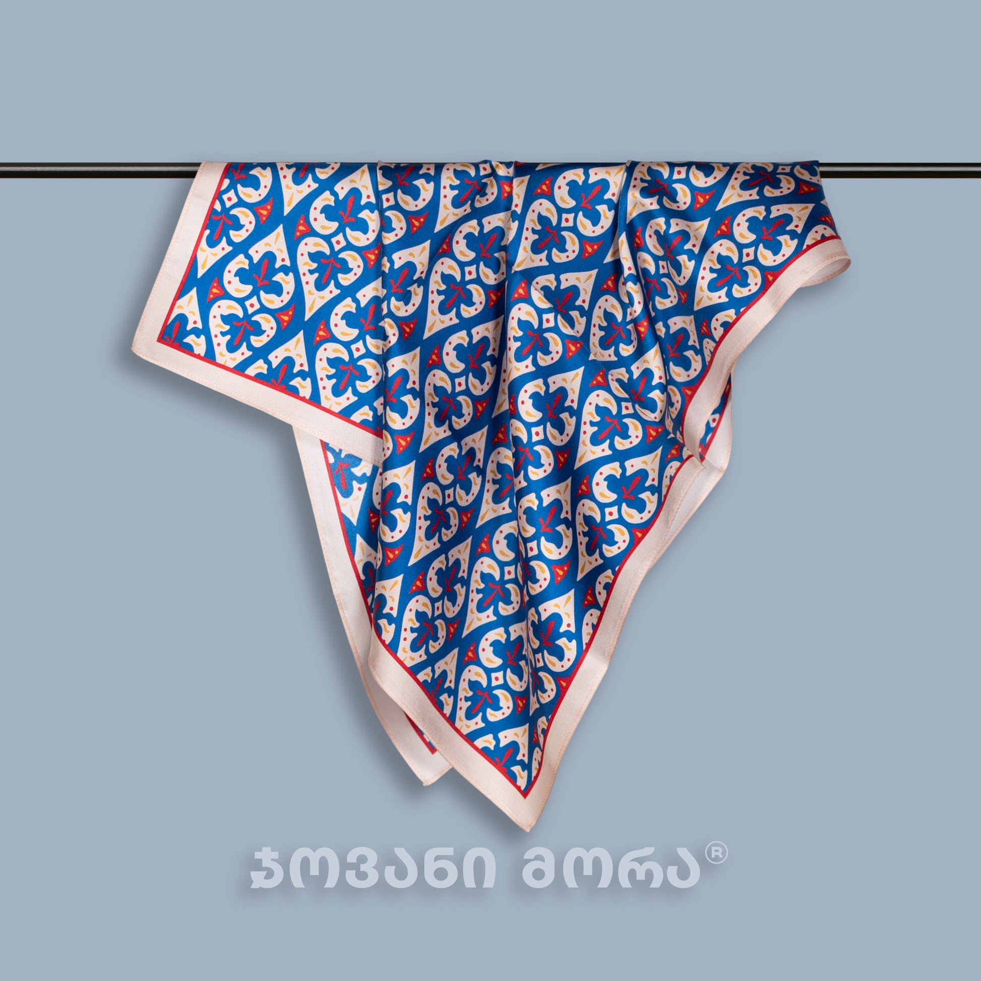 ნატურალური აბრეშუმისგან დამზადებული შარფი „ტრფობას“ პრინტით. კლასიკური ორნამენტის თანამედროვე ვერსია — აქსესუარი მკვეთრი ფერებითა და მბზინავი ტექსტურით, შექმნილი დახვეწილი სტილისთვის. -- ორნამენტი დაფუძნებულია მეფე გიორგი II-ის ბიზონების მუხის რკოს ნაქარგობის მოტივზე, რომელიც გამოსახულია გელათის მთავარ ეკლესიაში. მე-16 საუკუნე. ეს პროდუქტი შეიქმნა „ქართული ტექსტილის“ პროექტის ფარგლებში — TBC-სა და ხელოვნების სასახლის თანამშრომლობის შედეგად. -- კოდი: 10-SCRF-SLK-04-05