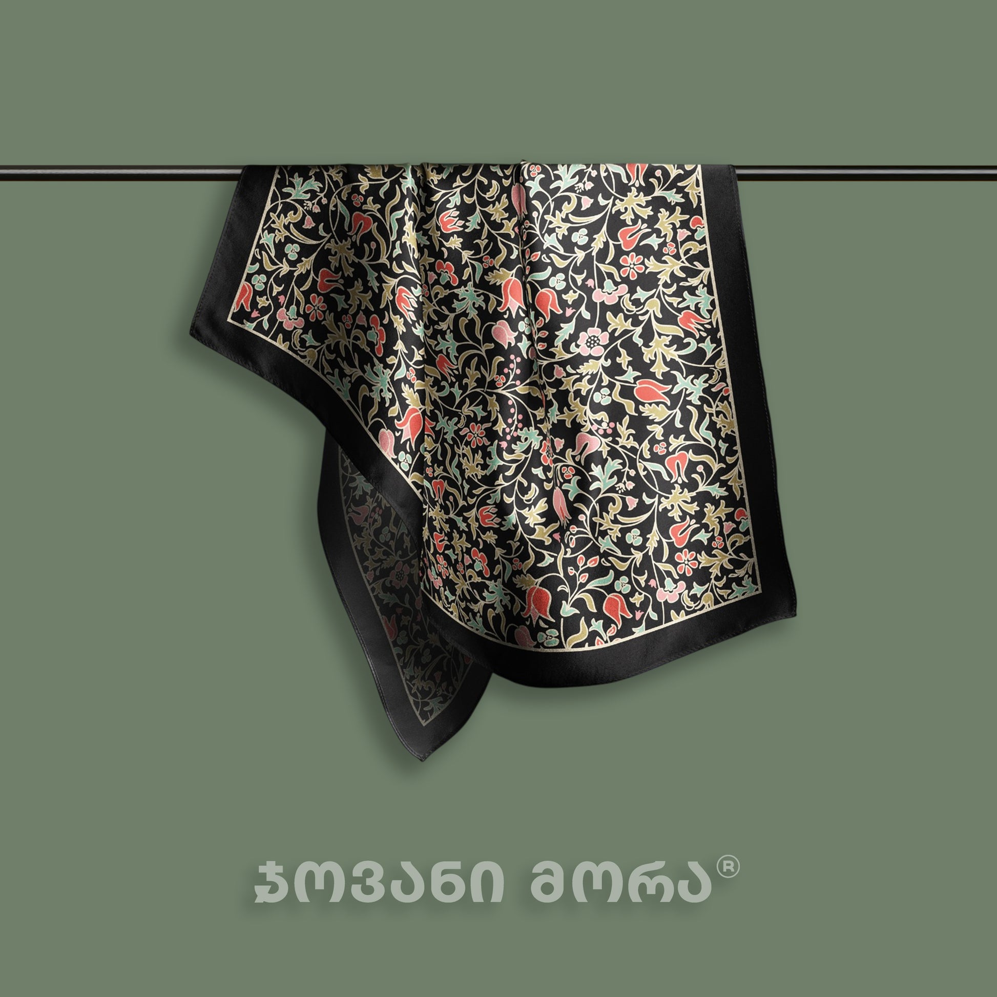 შარფები - ნატურალური აბრეშუმი - ღამის ბაღი - შავი