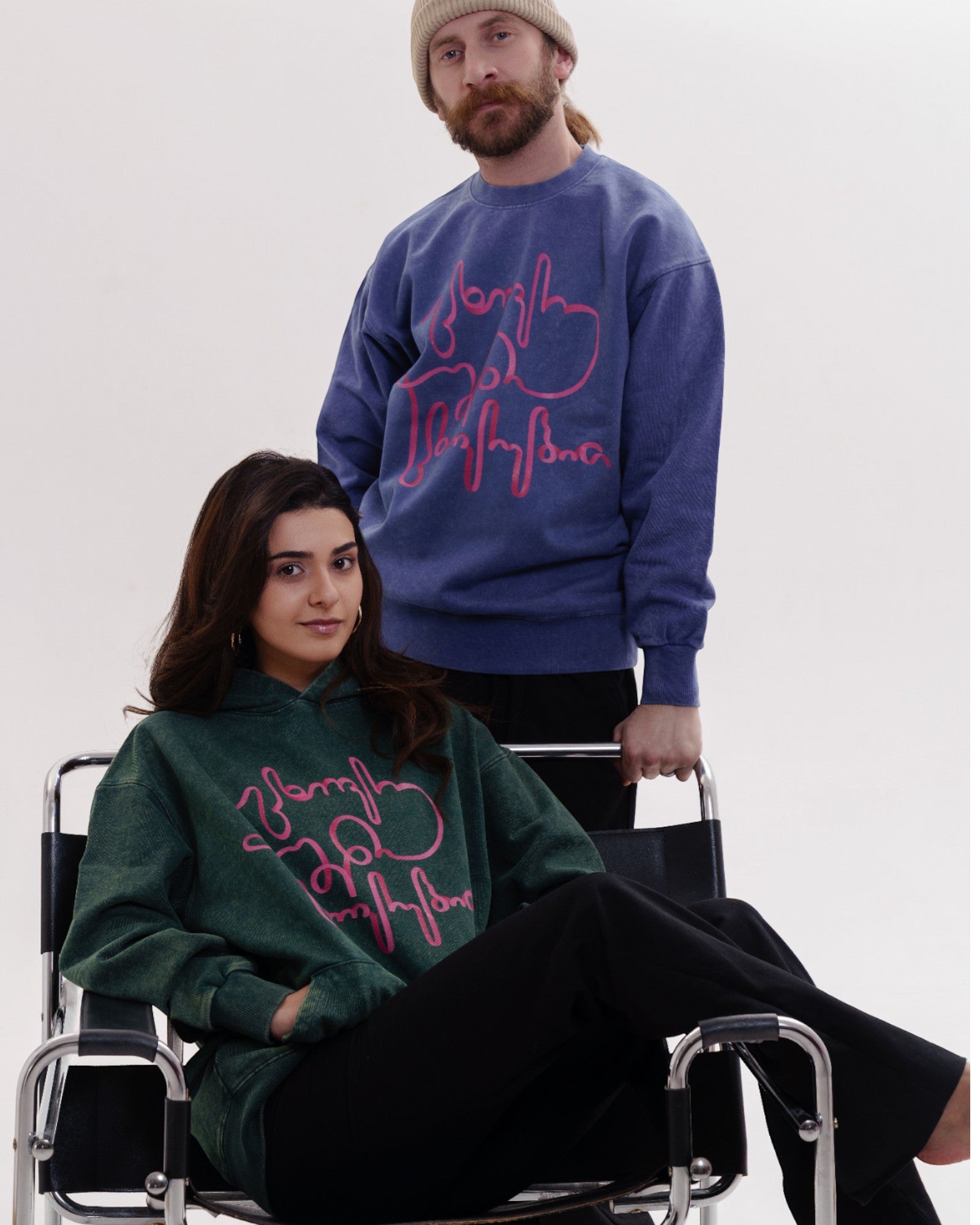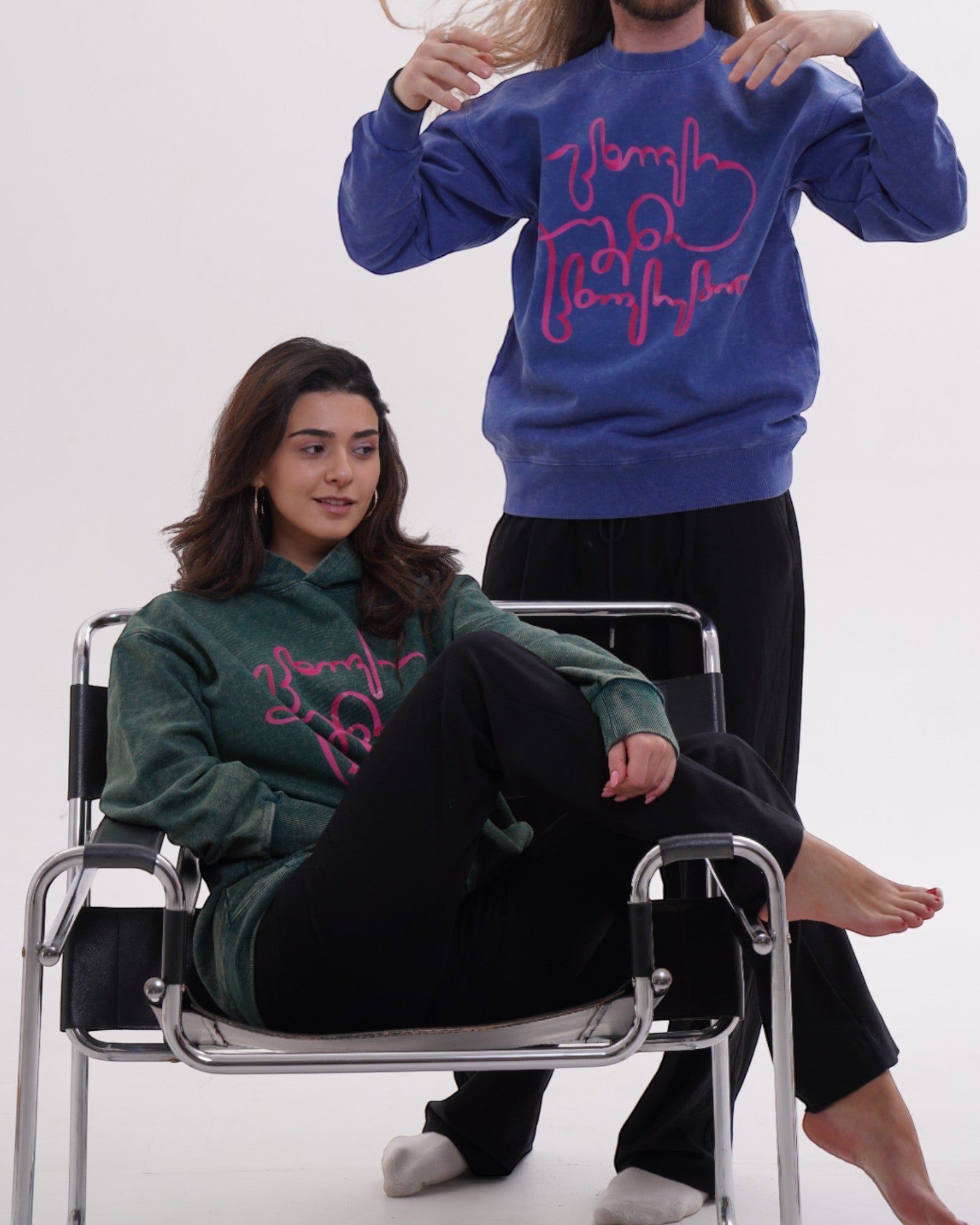 სვიტერი - 100% მჟავათი გარეცხილი ბამბა - იცხოვრე საკუთარი ცხოვრებით - ლურჯი - წითელი - m² x ჯოვანი მორა