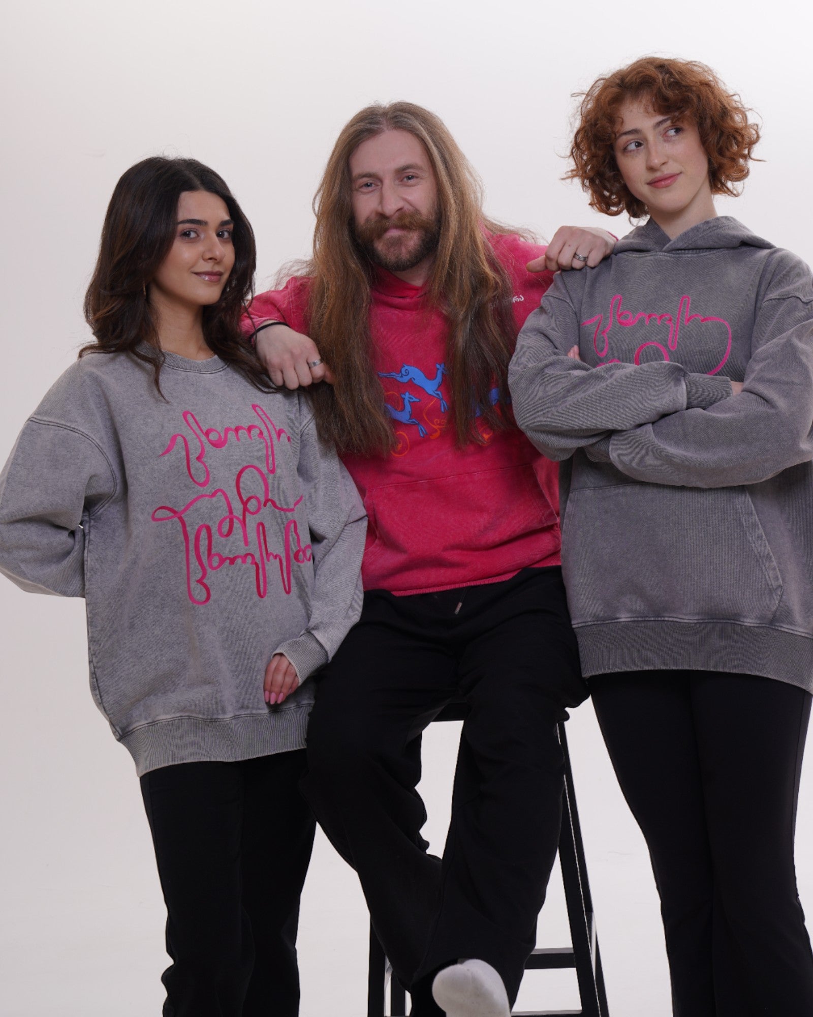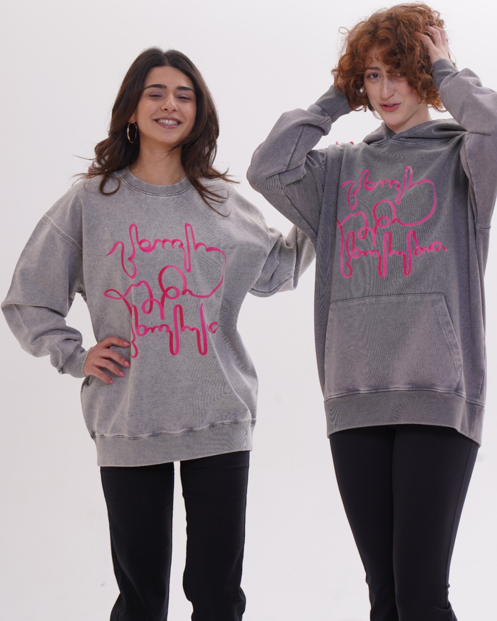 სვიტერი - 100% მჟავაში გარეცხილი ბამბა - იცხოვრე შენი ცხოვრებით - ნაცრისფერი - წითელი - m² x Giovanni Morra