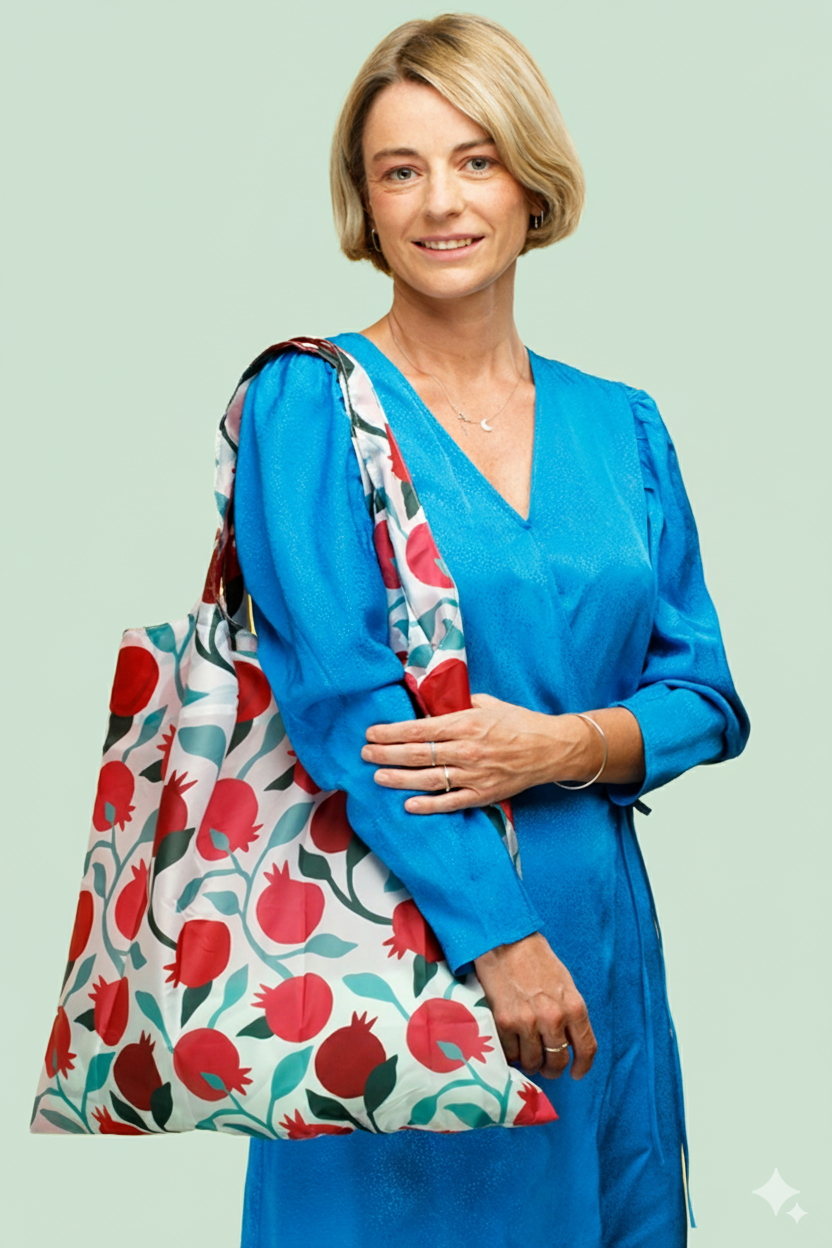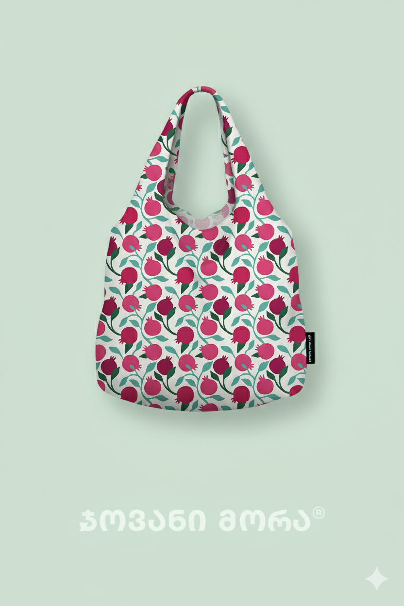 პოლიესტერისგან დამზადებული სასურსათო ჩანთა, წარწერით „ბროწეული“. მსუბუქი, გამძლე და მრავალჯერადი გამოყენების. მარტივი არჩევანი გარემოზე ზრუნვისთვის. -- - ნამდვილი ზომა: 42x50 სმ - კოდი: 10-GBAG-PLS-24-25