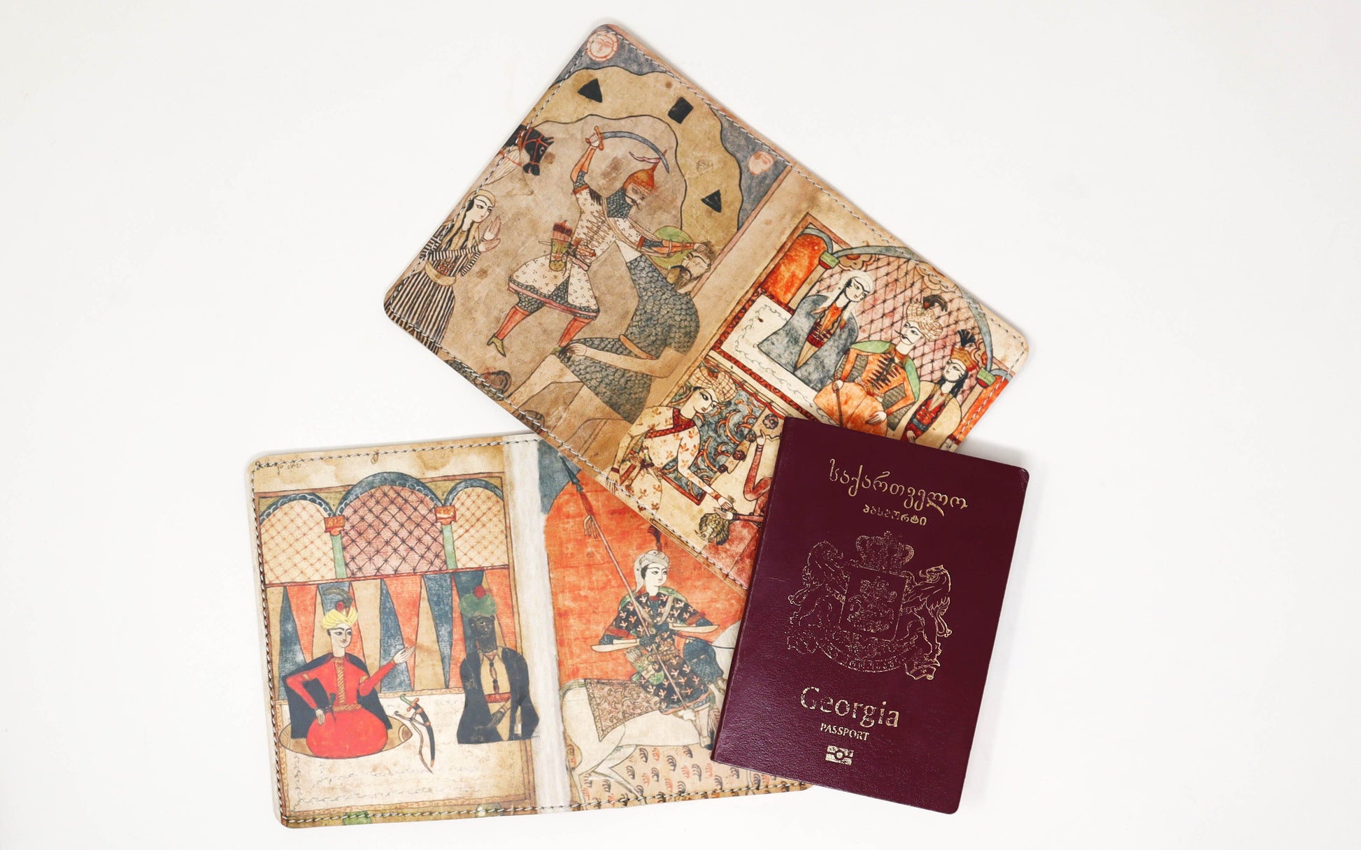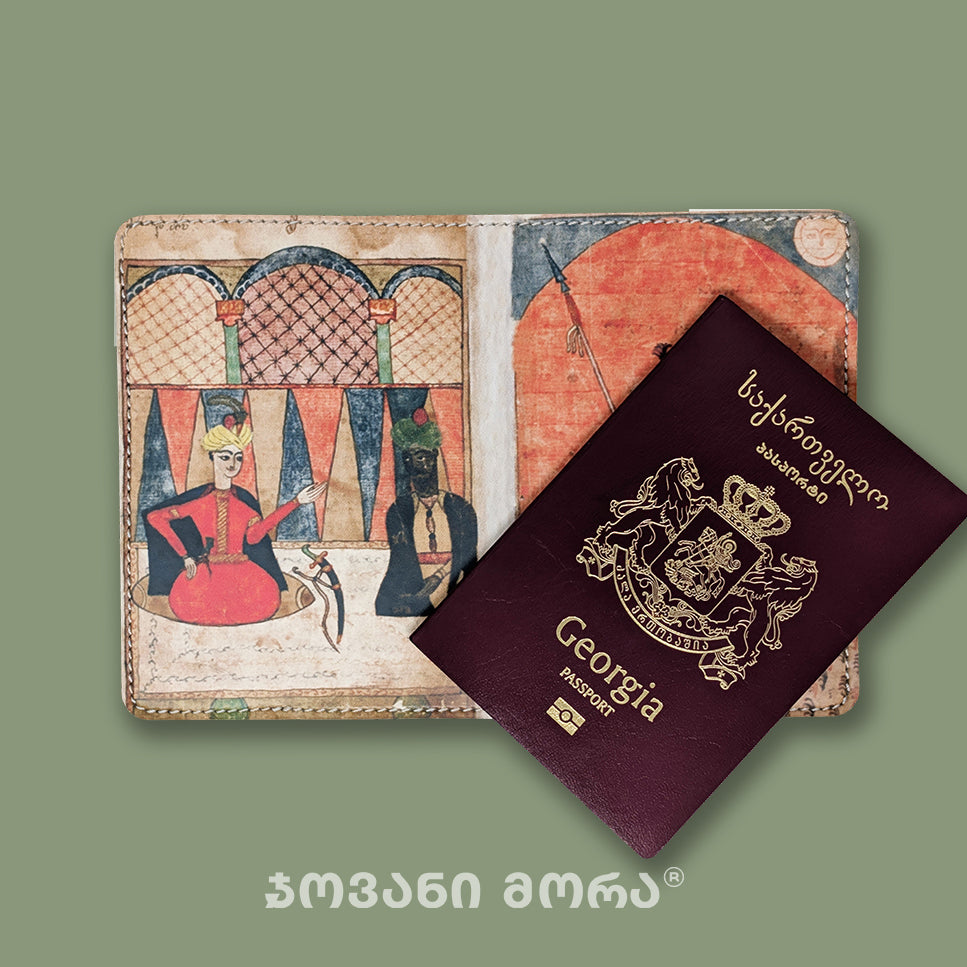ვეგანური ტყავისგან დამზადებული პასპორტის სამაგრი „ავთანდილის“ პრინტით. გამძლე და მსუბუქი. ჯოვანი მორას პასპორტის სამაგრი მოგზაურობის პირად ისტორიად იქცევა — შექმნილია თქვენი ვინაობისა და დამოკიდებულების თამამად გამოსახატავად. დამზადებულია გამძლე მასალებითა და მაღალი ხარისხის ბეჭდვით, რათა წლების შემდეგაც ისეთივე გამორჩეული დარჩეს, როგორც პირველივე დღეს იყო. -- დიზაინი, შთაგონებული „ვეფხისტყაოსნით“, რომელიც აერთიანებს კლასიკურ ილუსტრაციას თანამედროვე აქსესუართან — ეროვნული იდენტობის ელეგანტურ გამოხატულებას. - ნამდვილი ზომა: 13.5x19.5 სმ - კოდი: 10-PASS-PUL-21-15