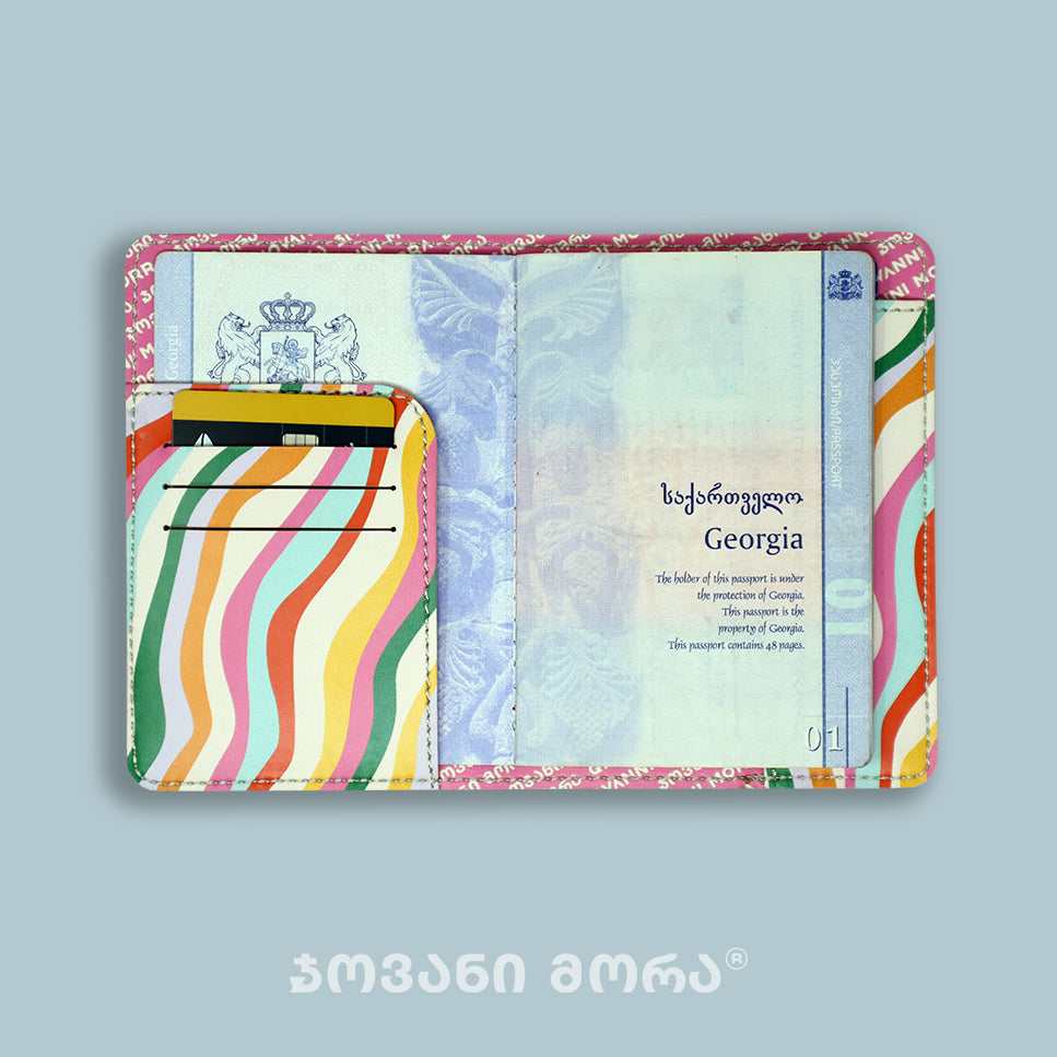 Passport holder made of vegan leather, featuring the “Waves” print. Durable and lightweight. Giovanni Morra’s passport holder becomes a personal story of travel — created to boldly express your identity and attitude. Made with durable materials and high-quality printing to remain just as distinctive years later as it was on day one. -- - Actual size: 13.5x19.5 cm - SKU: 10-PASS-PUL-61-29