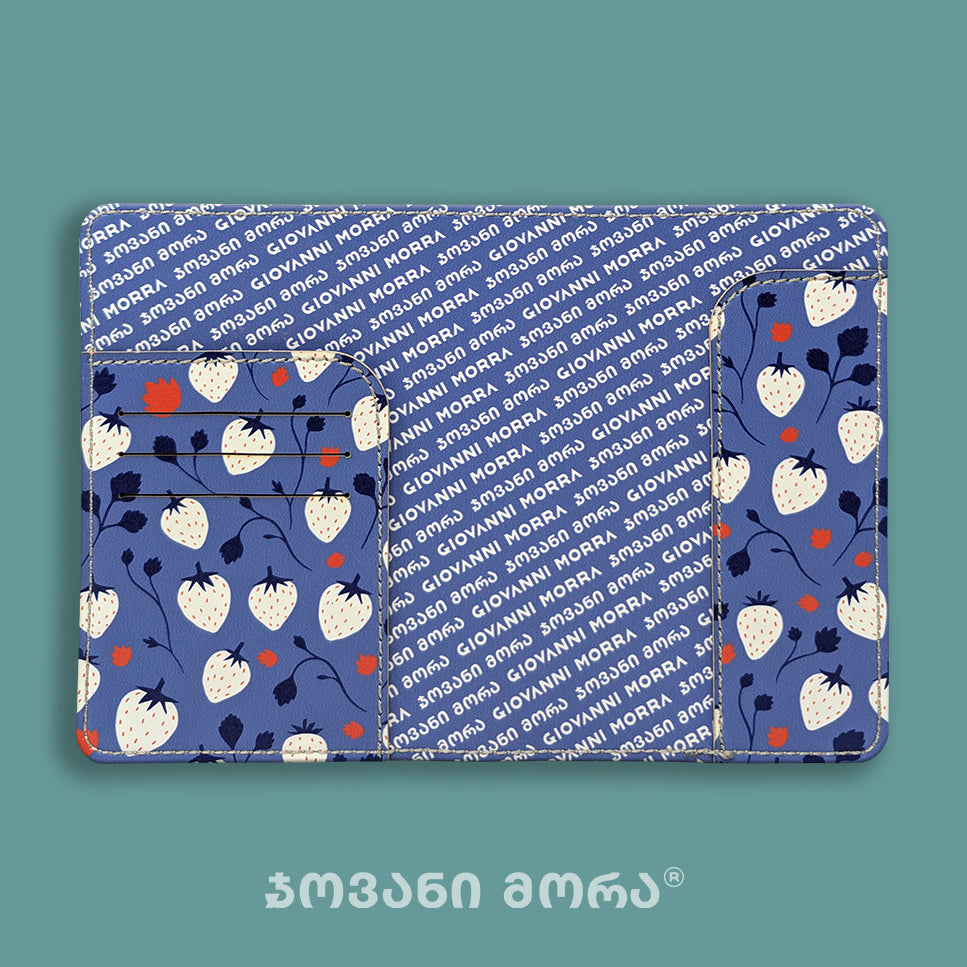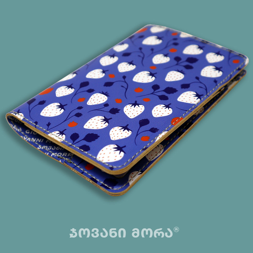 Passport holder made of vegan leather, featuring the “Strawberries” print. Durable and lightweight. Giovanni Morra’s passport holder becomes a personal story of travel — created to boldly express your identity and attitude. Made with durable materials and high-quality printing to remain just as distinctive years later as ````was on day one. -- - Actual size: 13.5x19.5 cm - SKU: 10-PASS-PUL-59-06-25