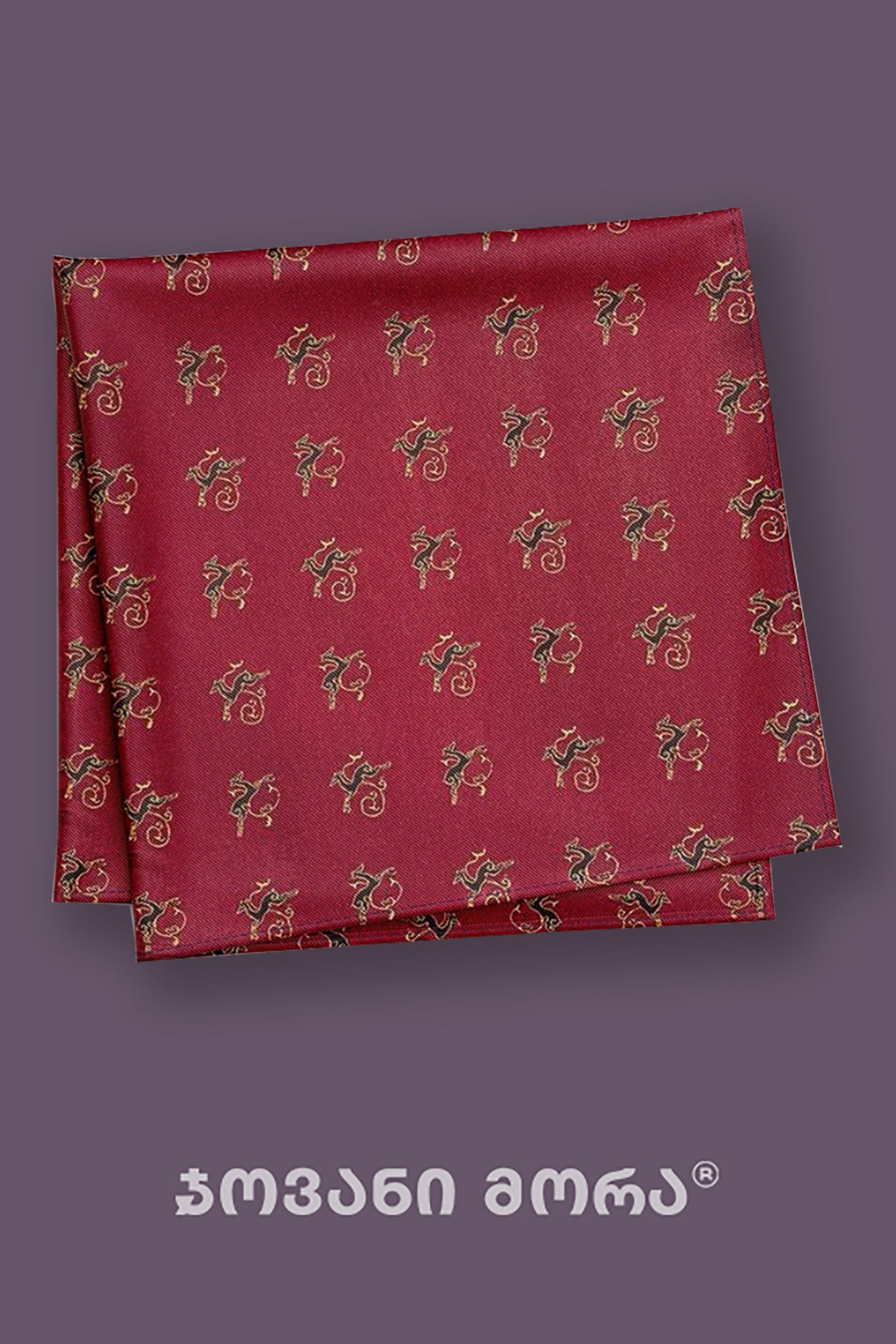 ნატურალური აბრეშუმისგან დამზადებული ჯიბის კვადრატი „ირმის ნახტომის“ პრინტით. თამამი წითელი აქცენტი დახვეწილი იერსახისთვის. -- ორნამენტი დაფუძნებულია დონორ აფაქიძეს ტანსაცმლის მოტივზე, რომელიც გამოსახულია წალენჯიხის ეკლესიის ფრესკაზე. მე-17 საუკუნე. ეს პროდუქტი შეიქმნა „ქართული ტექსტილის“ პროექტის ფარგლებში — TBC-სა და ხელოვნების სასახლის თანამშრომლობის შედეგად. - ნამდვილი ზომა: 36x36 სმ - SKU: 10-POKT-SLK-11-08