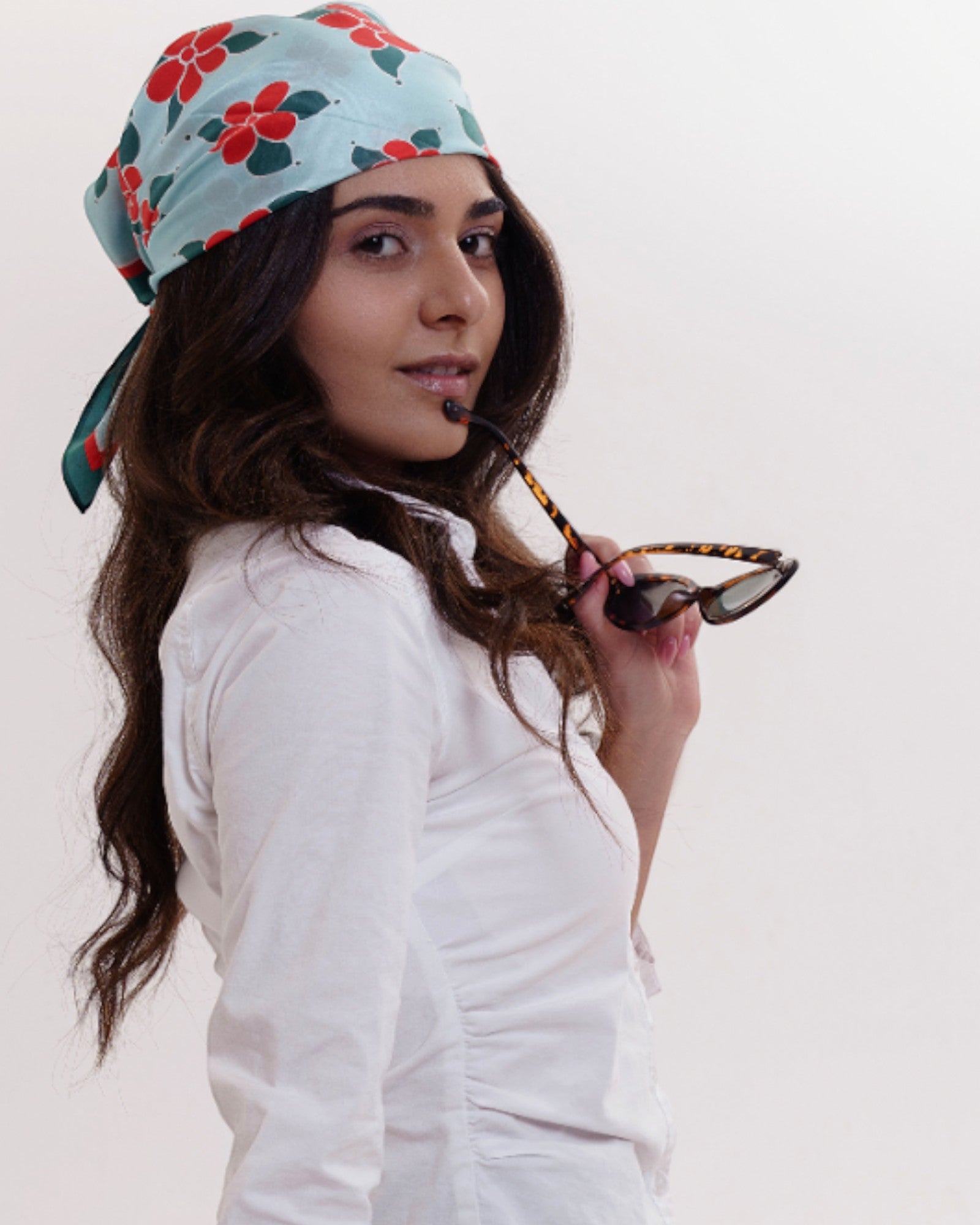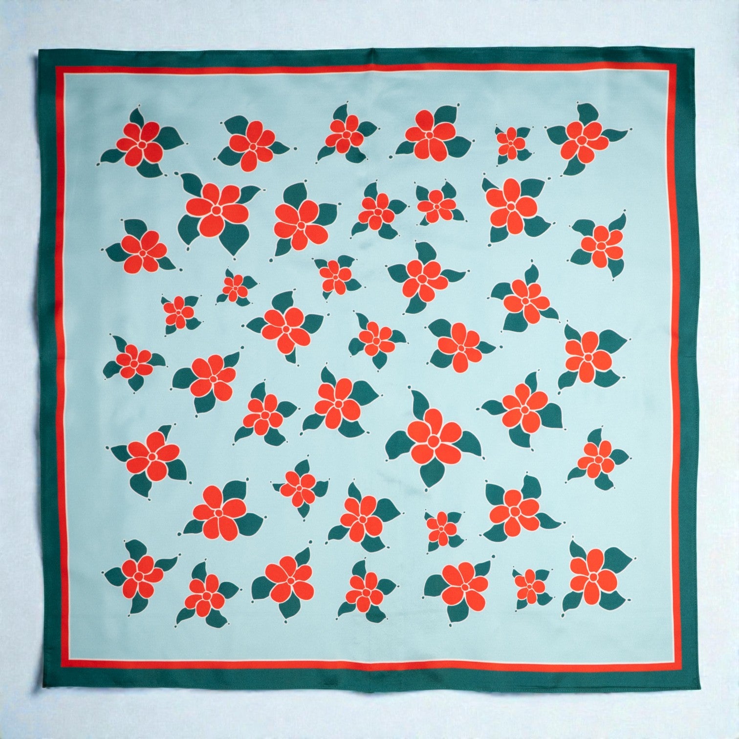 Scarves - Natural Silk - Red Lotus - Sky Blue