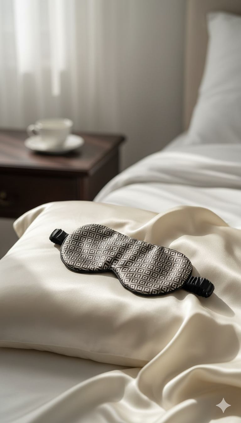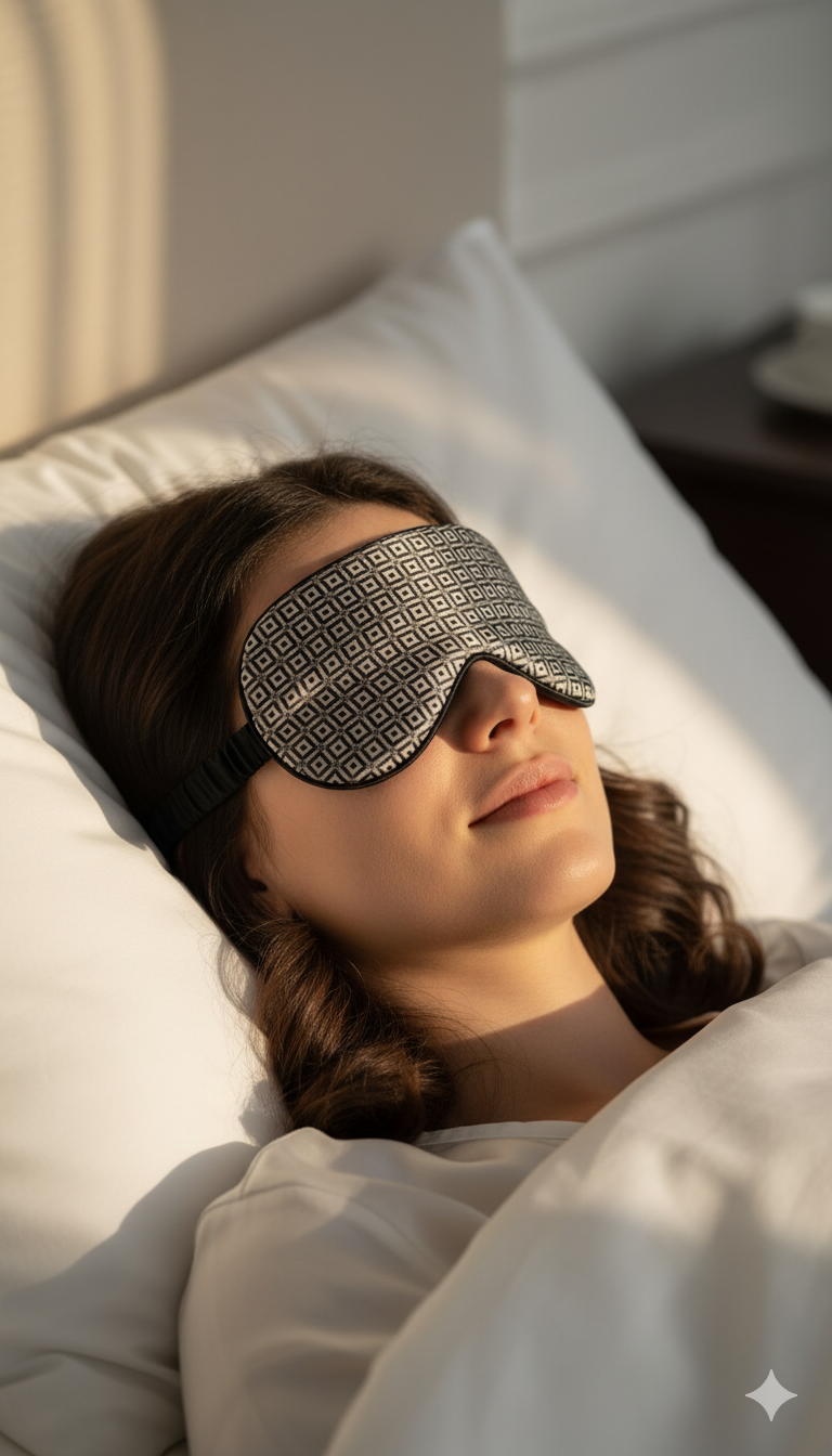 ძილის ნიღბები - ნატურალური აბრეშუმი - დილის ვარსკვლავი - შავი
